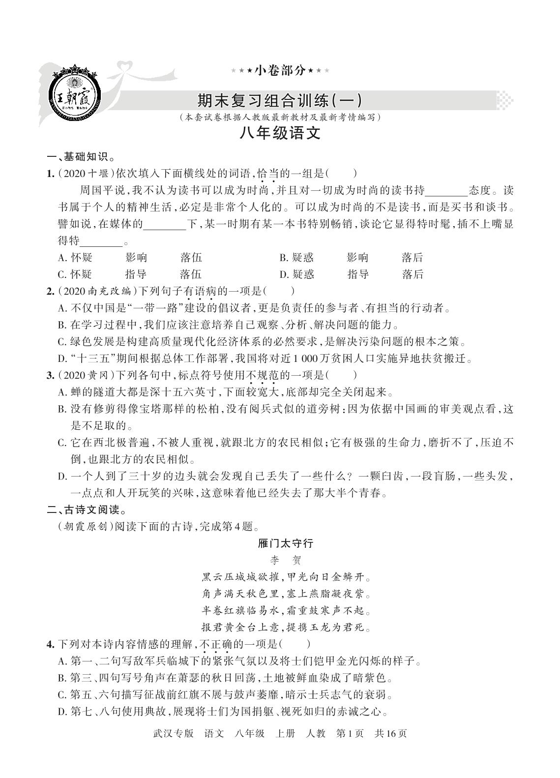 王朝霞期末小卷八年级上册语文(人教版)【0】