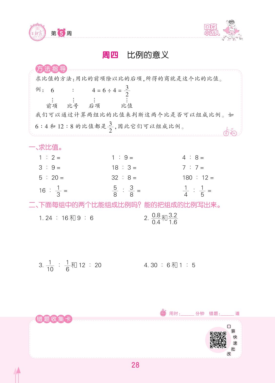 2022下册六年级数学人教版 第5周 周四