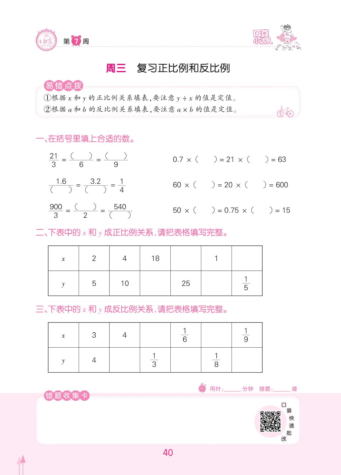 2022下册六年级数学人教版 第7周 周三