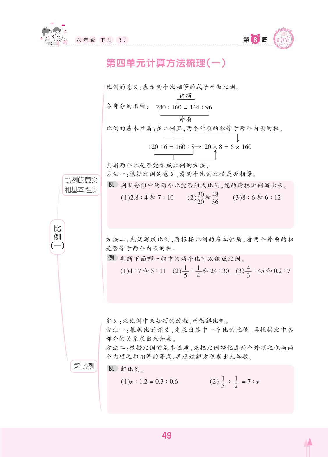 2022下册六年级数学人教版 第8周 第四单元计算方法梳理(一)