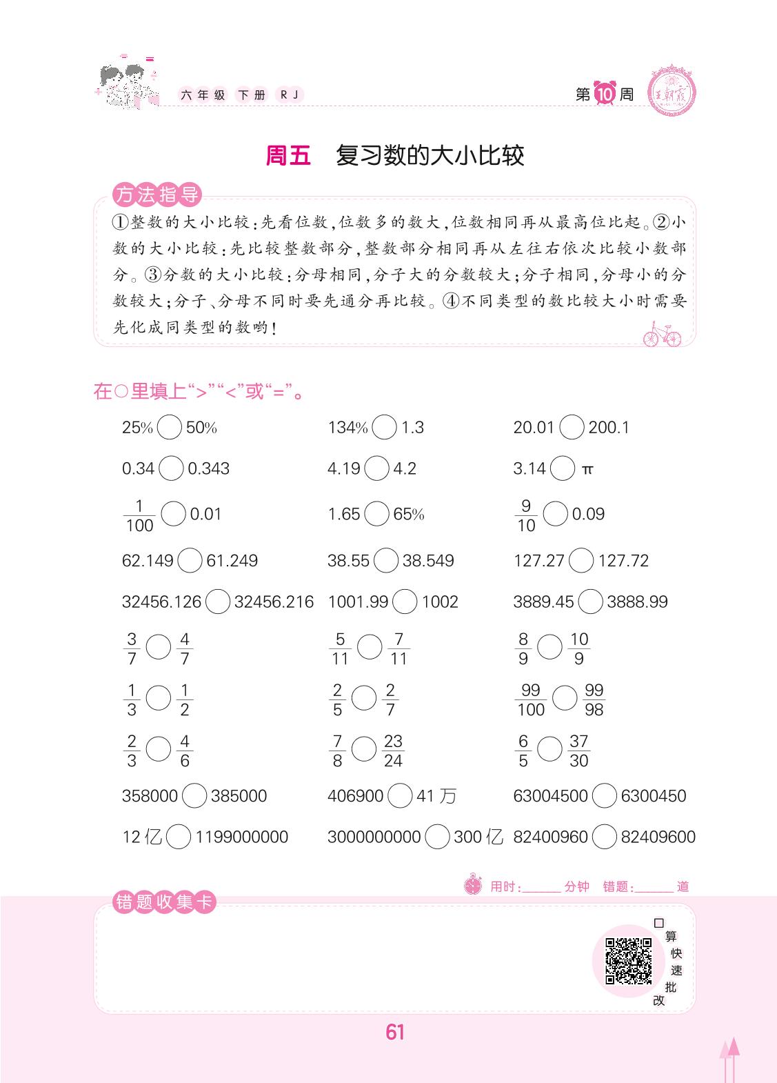 2022下册六年级数学人教版 第10周 周五
