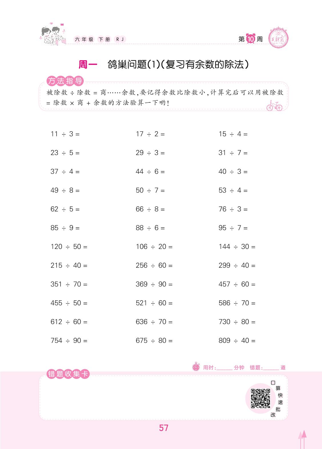 2022下册六年级数学人教版 第10周 周一