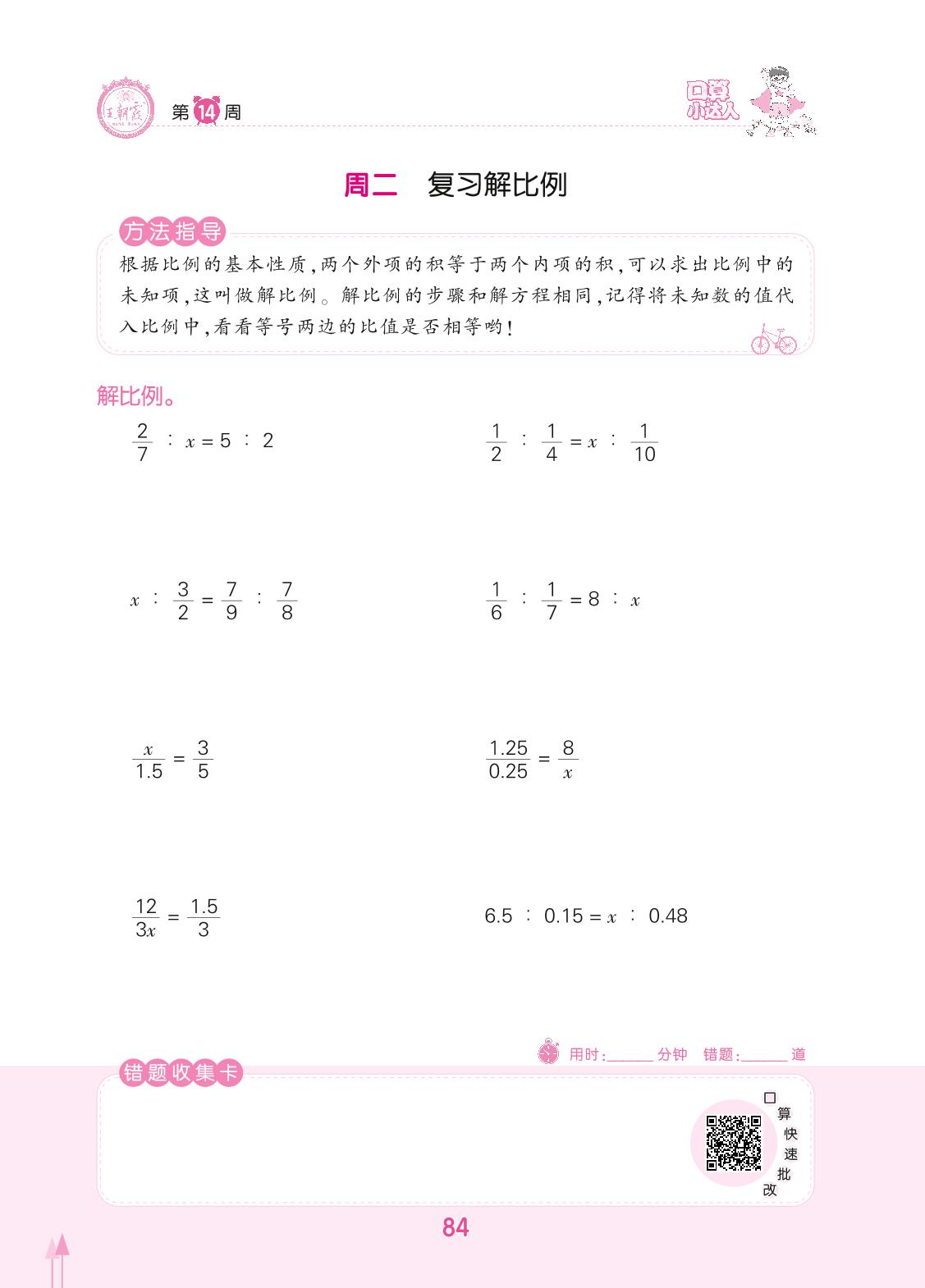 2022下册六年级数学人教版 第14周 周二