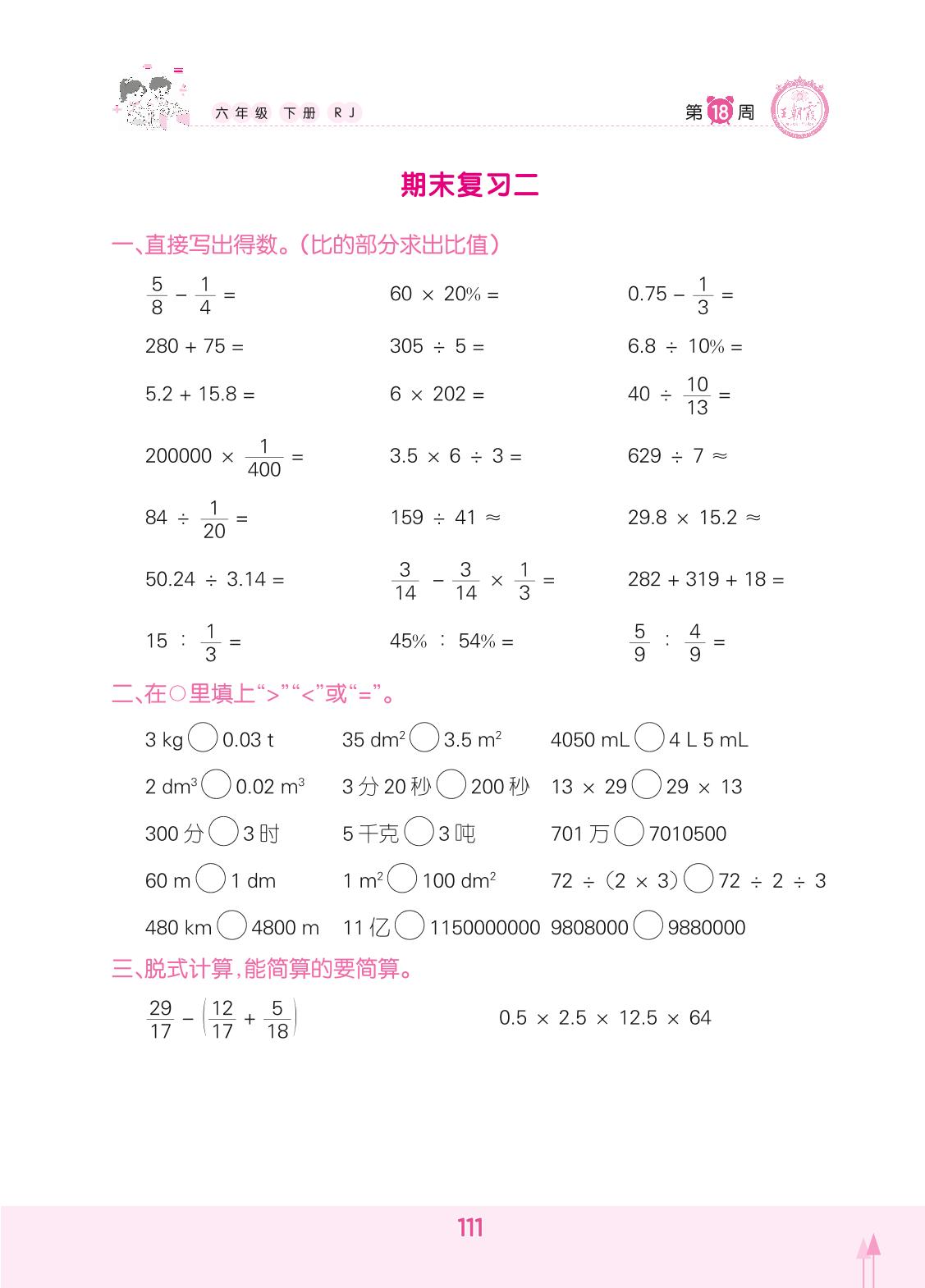 2022下册六年级数学人教版 期末复习二