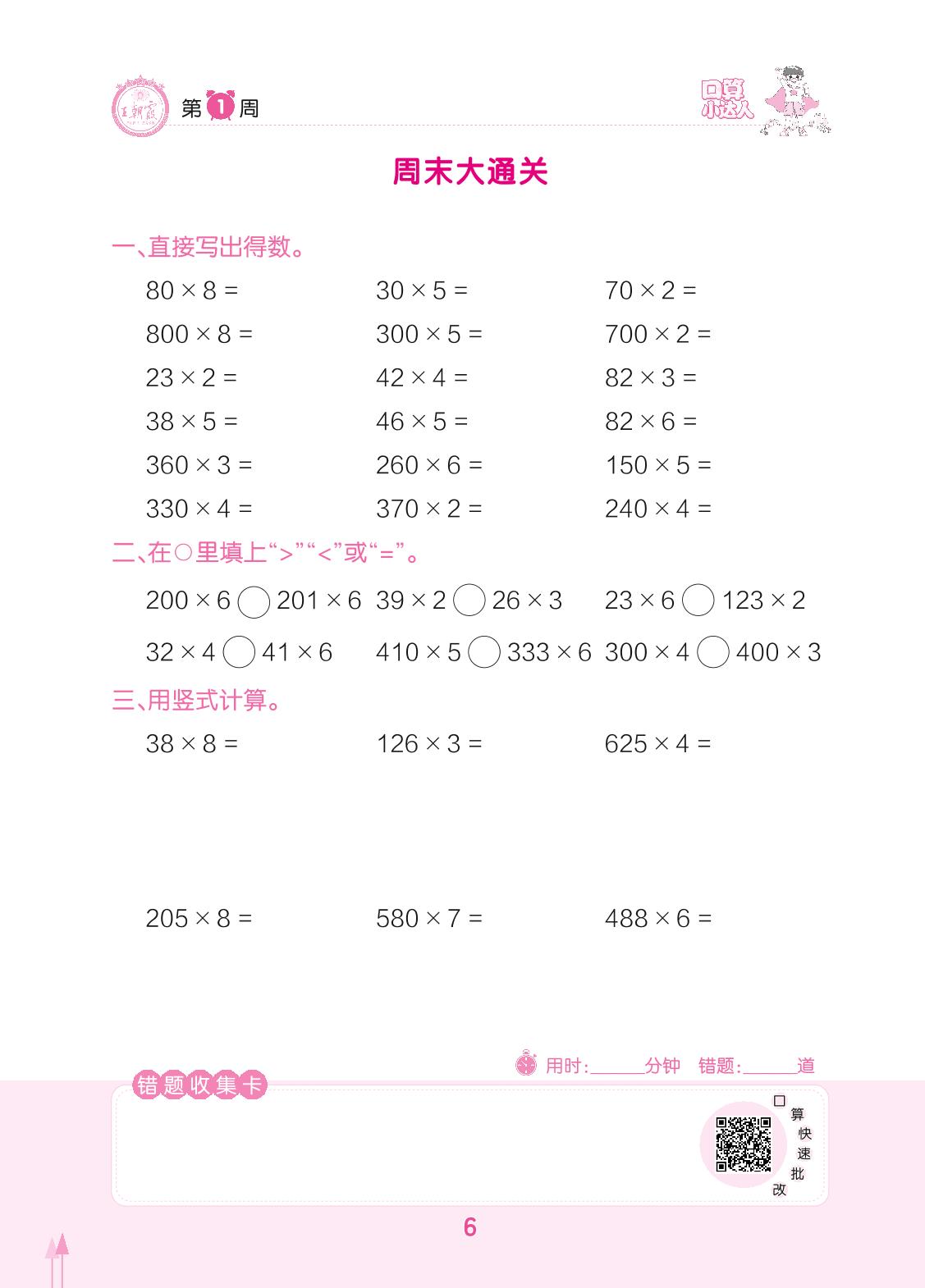 2022下册三年级数学人教版 第1周 周末大通关