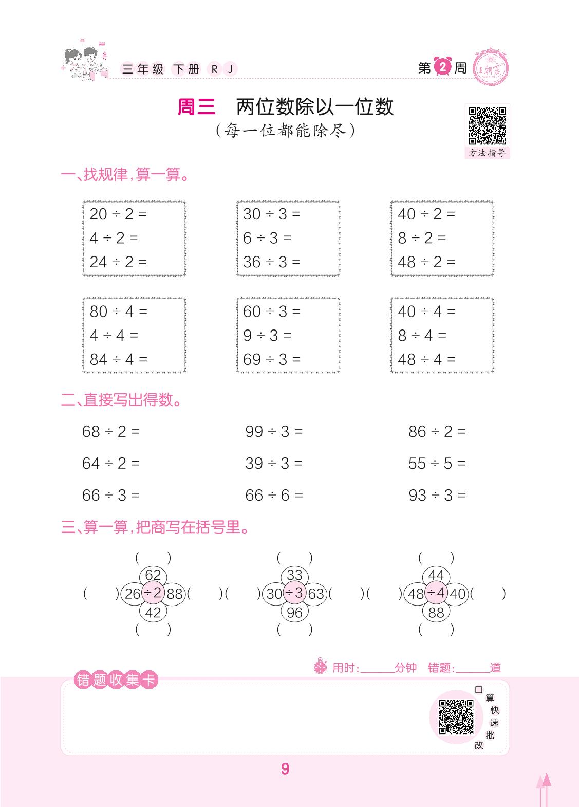 2022下册三年级数学人教版 第2周 周三