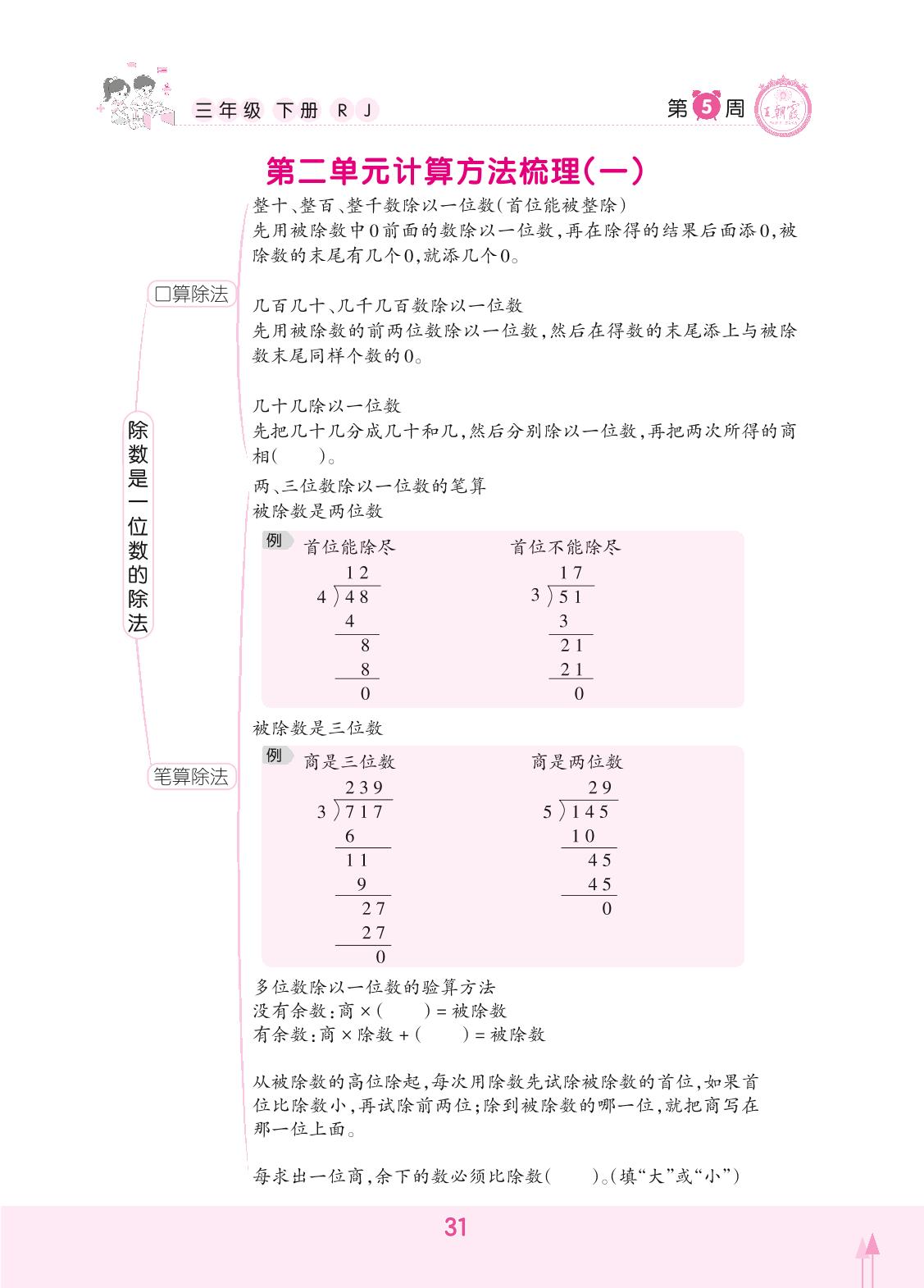 2022下册三年级数学人教版 第5周 第二单元计算方法梳理