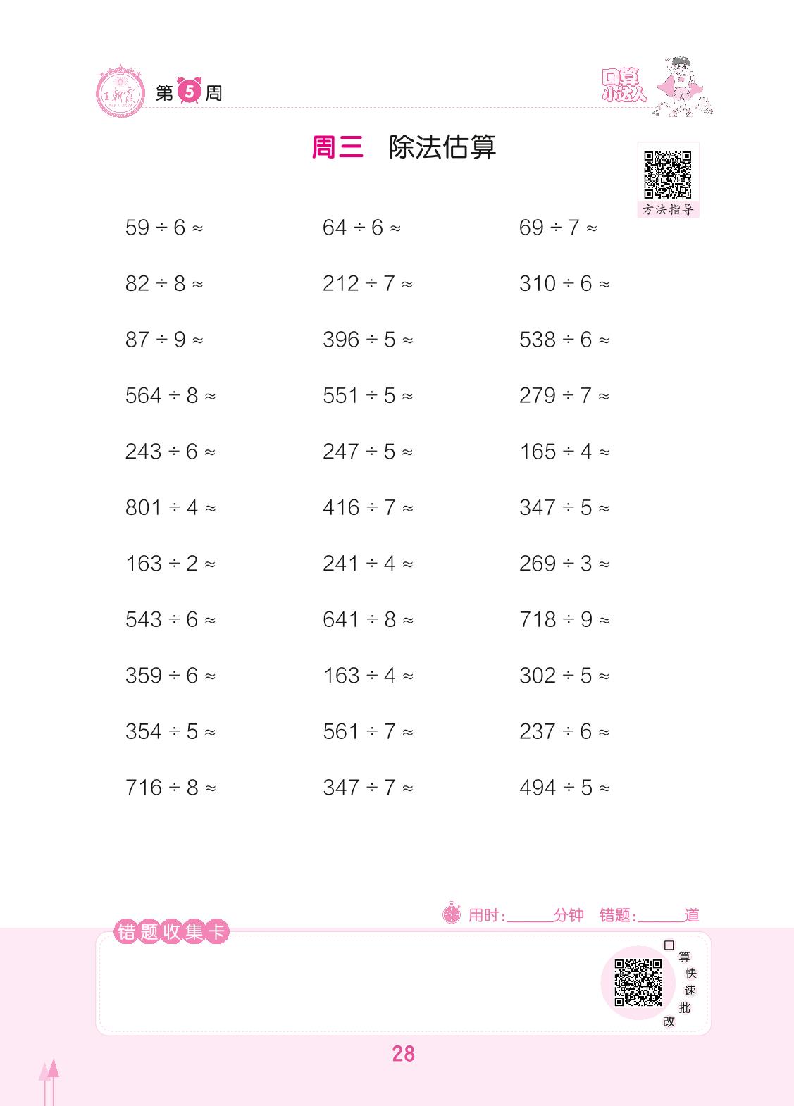 2022下册三年级数学人教版 第5周 周三