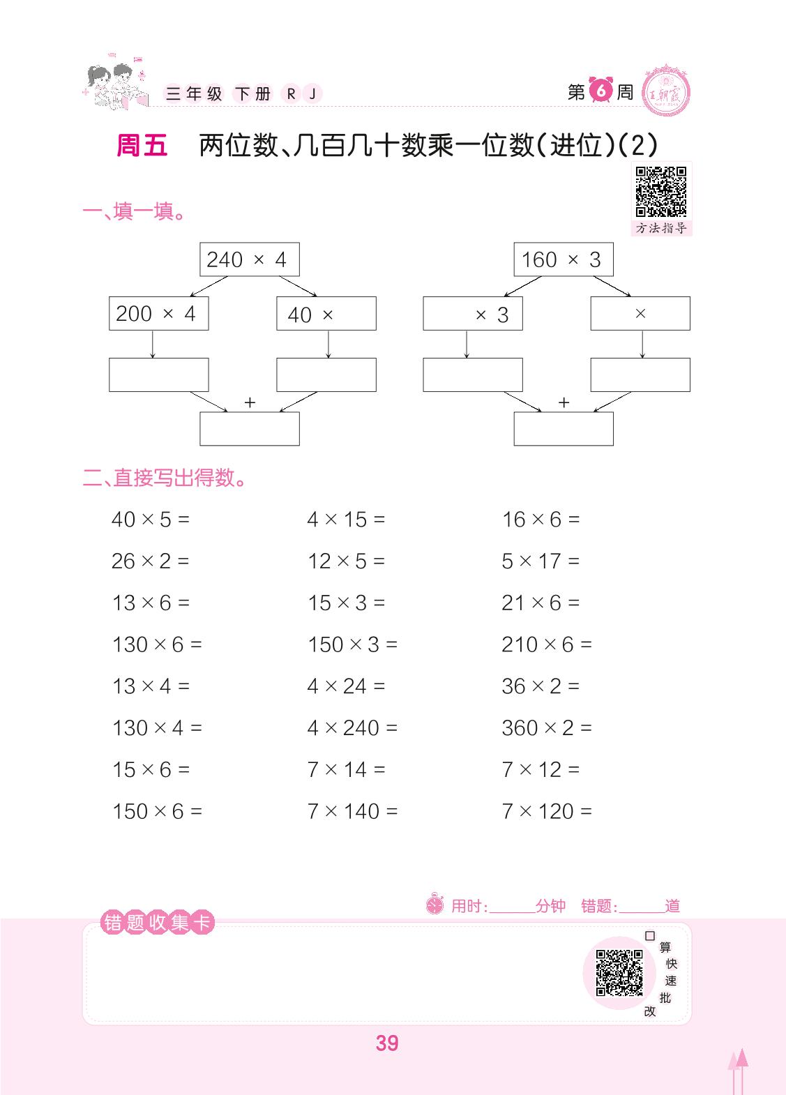 2022下册三年级数学人教版 第6周 周五