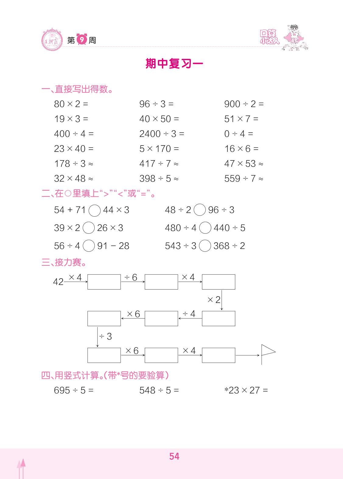 2022下册三年级数学人教版 期中复习一(计算专练)