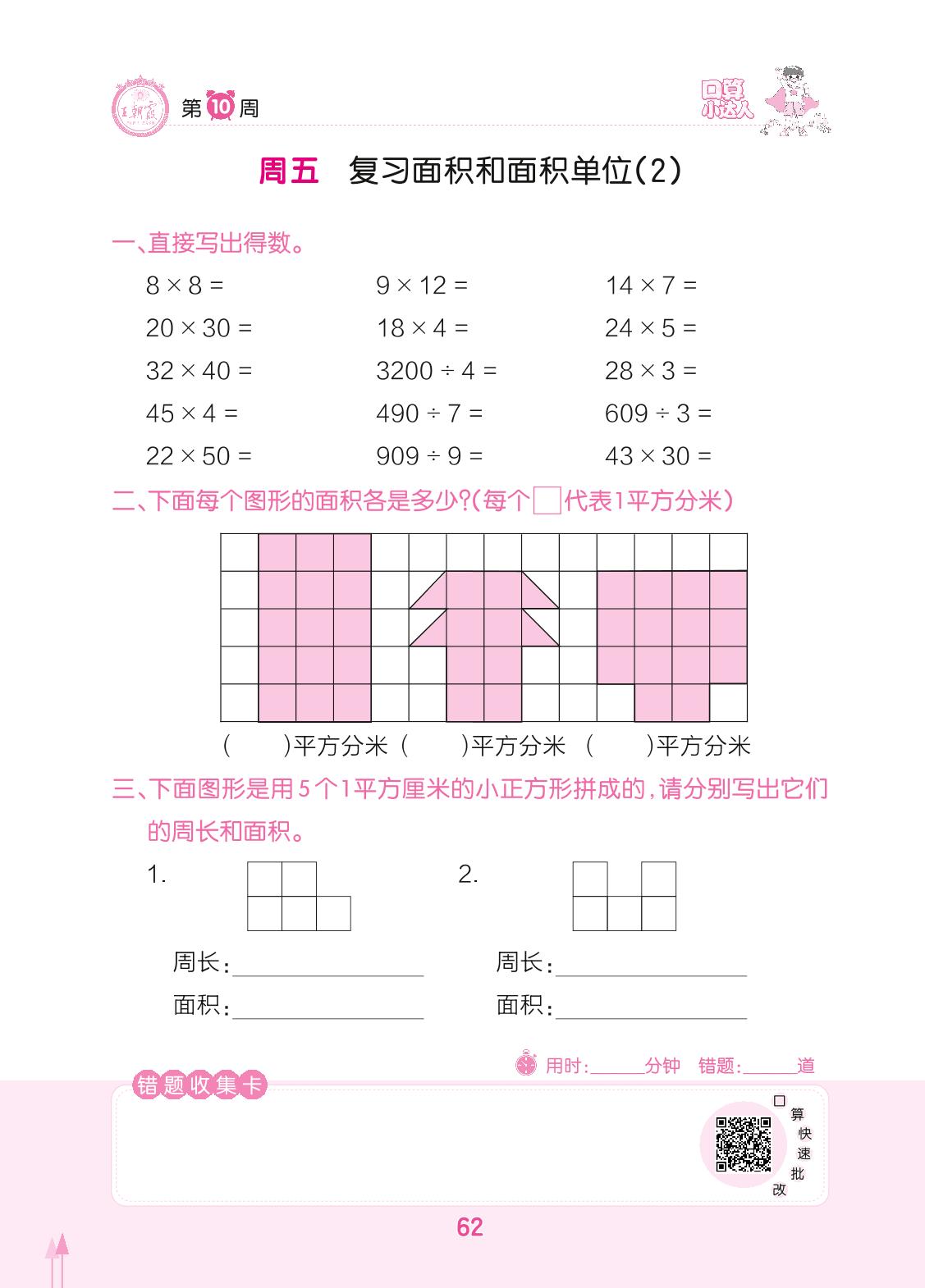 2022下册三年级数学人教版 第10周 周五