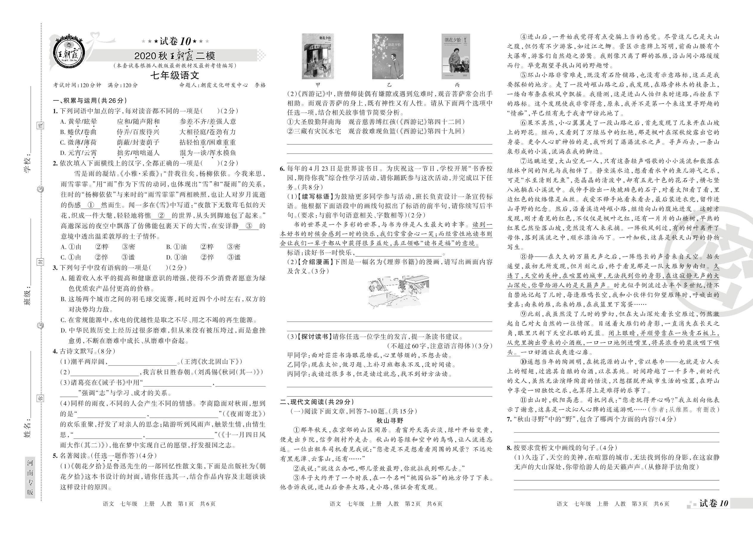 王朝霞期末模拟卷七年级上册语文(人教版)_R2108025039【10】