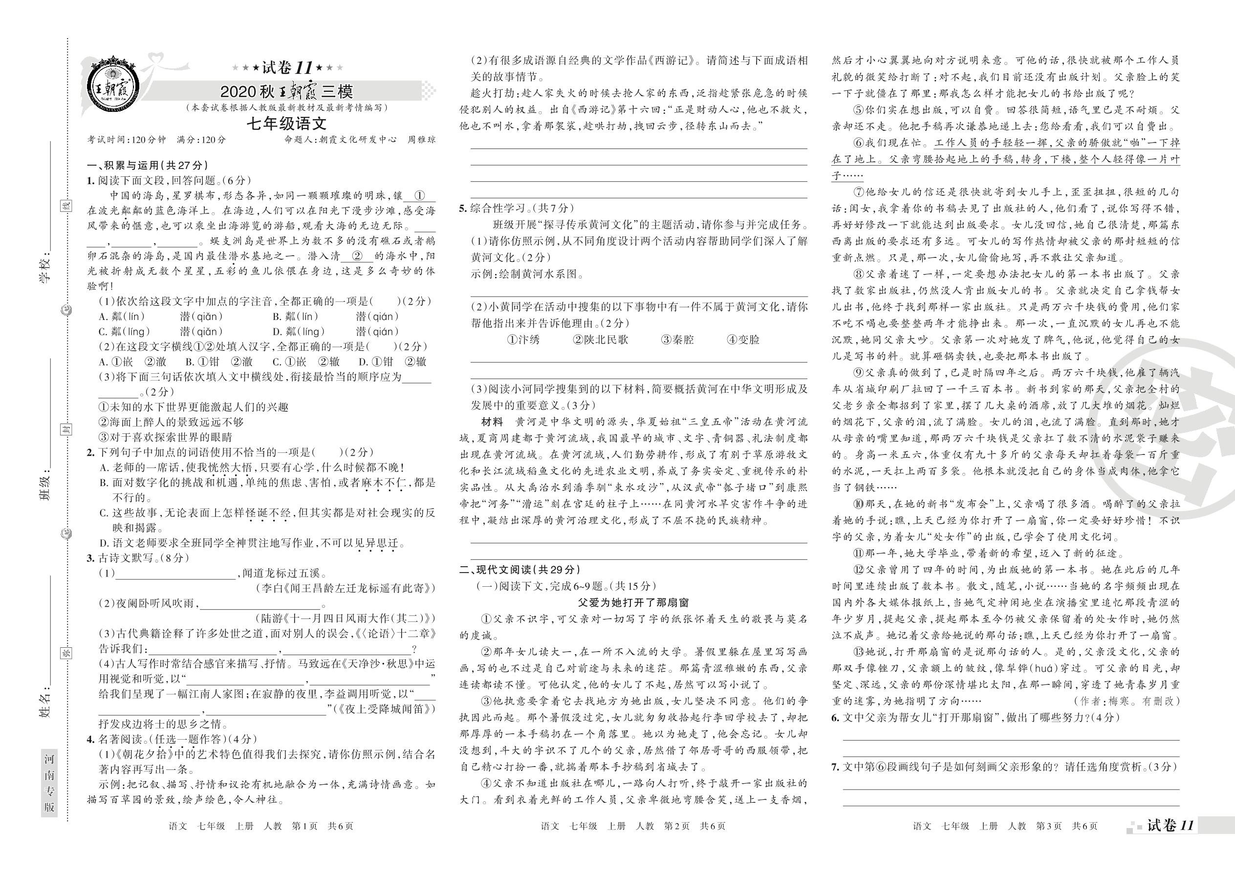 王朝霞期末模拟卷七年级上册语文(人教版)_R2108025048【11】