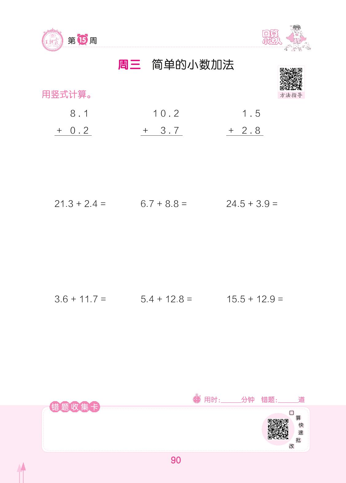 2022下册三年级数学人教版 第15周 周三