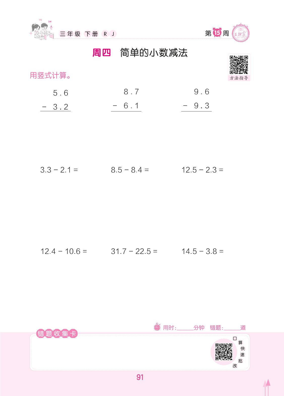2022下册三年级数学人教版 第15周 周四
