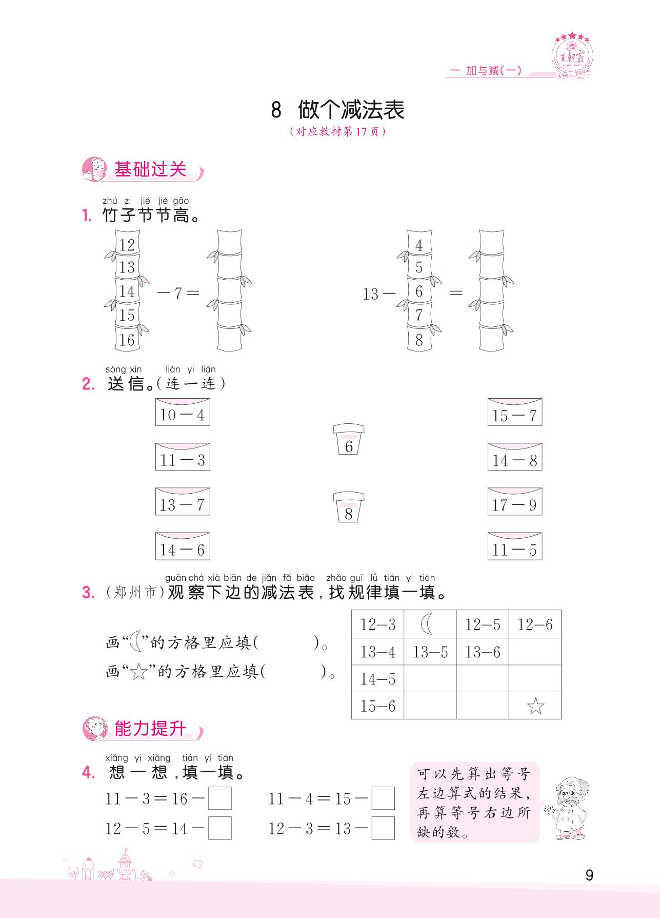 2022下册一年级数学北师版 一 加与减(一)——8 做个减法表