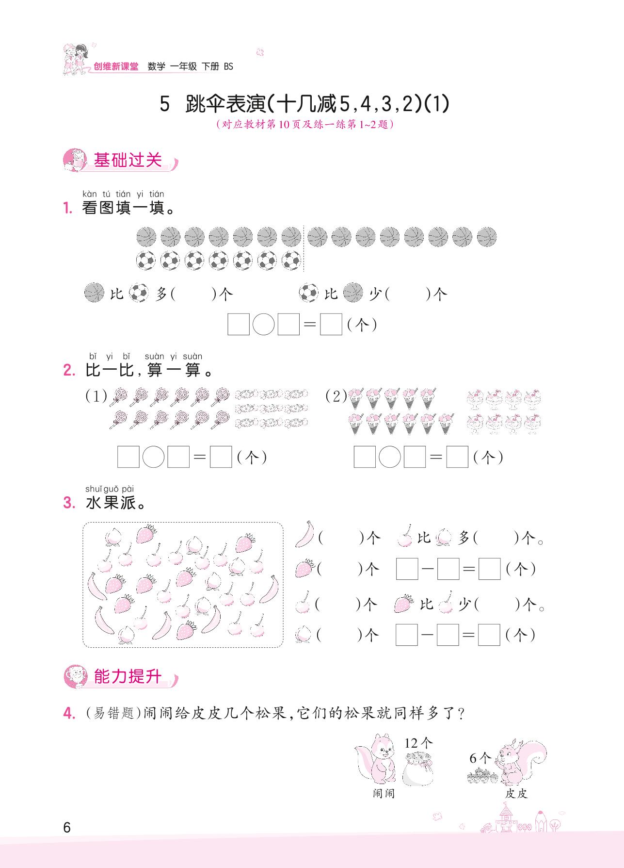 2022下册一年级数学北师版 一 加与减(一)——5 跳伞表演(1)