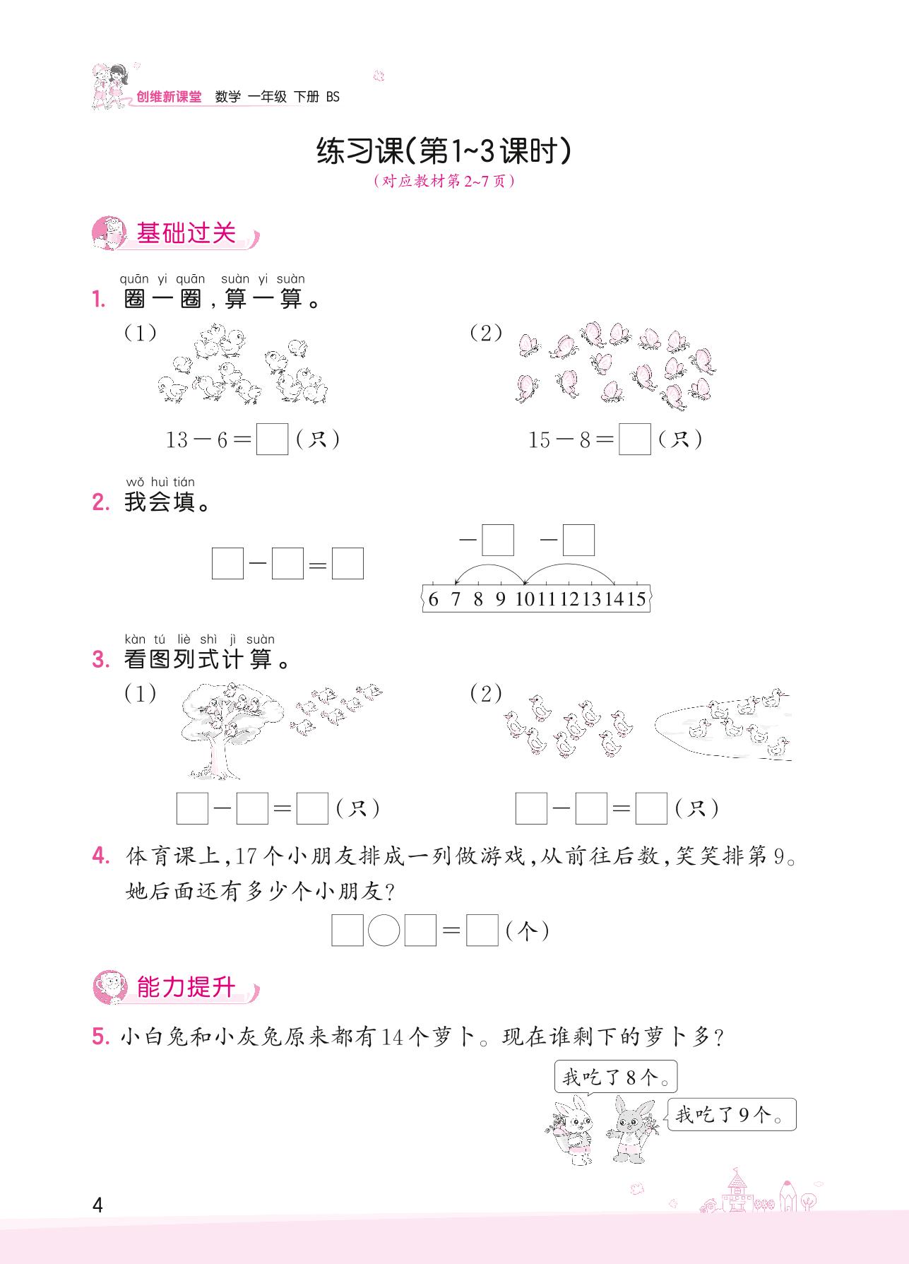 2022下册一年级数学北师版 一 加与减(一)——练习课(第1~3课时)