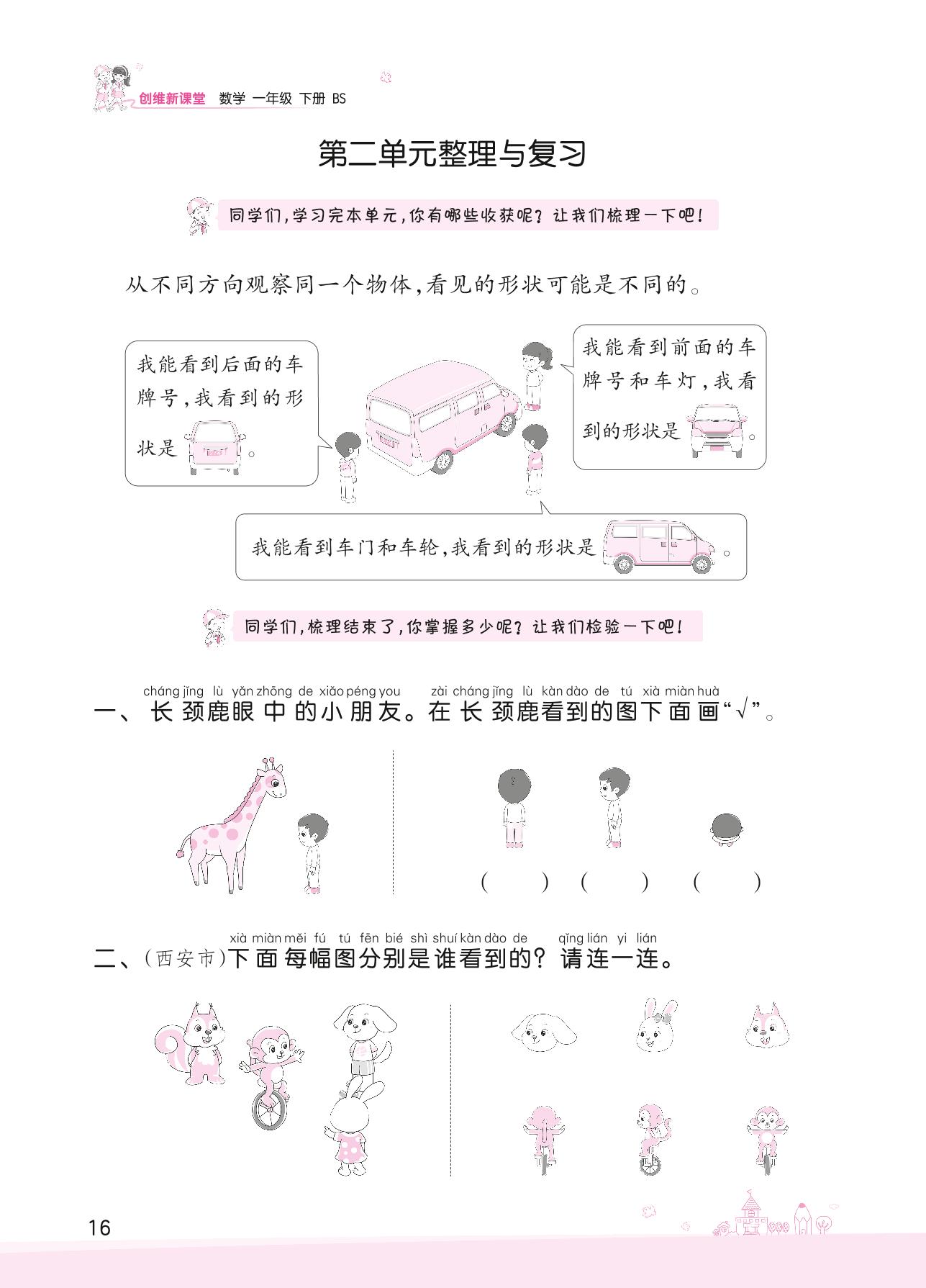 2022下册一年级数学北师版 二 观察物体——第二单元整理与复习