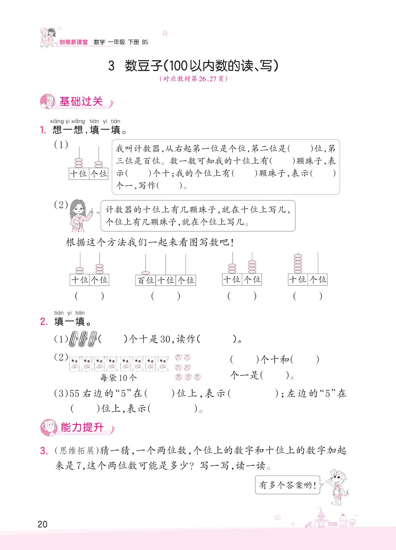 2022下册一年级数学北师版 三 生活中的数——3 数豆子