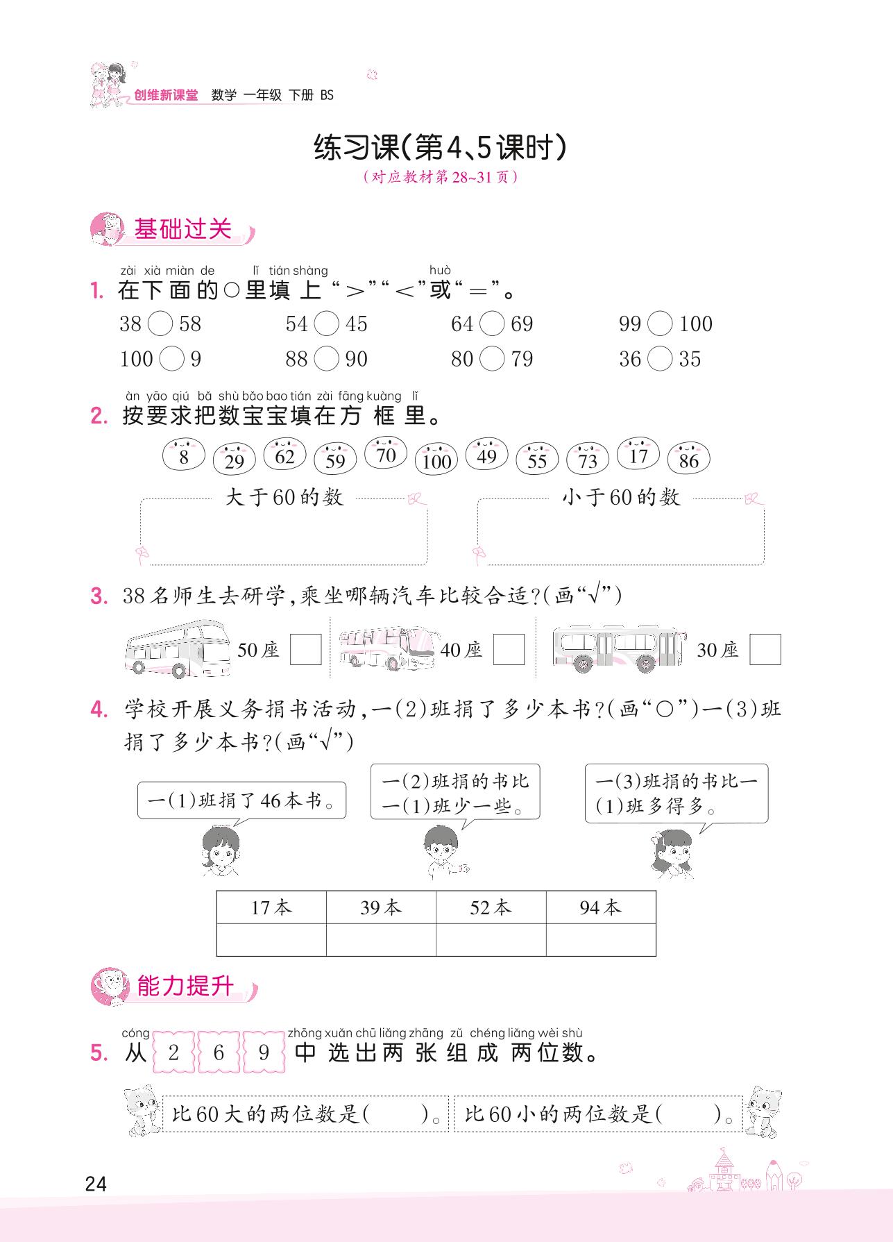 2022下册一年级数学北师版 三 生活中的数——练习课(第4、5课时)