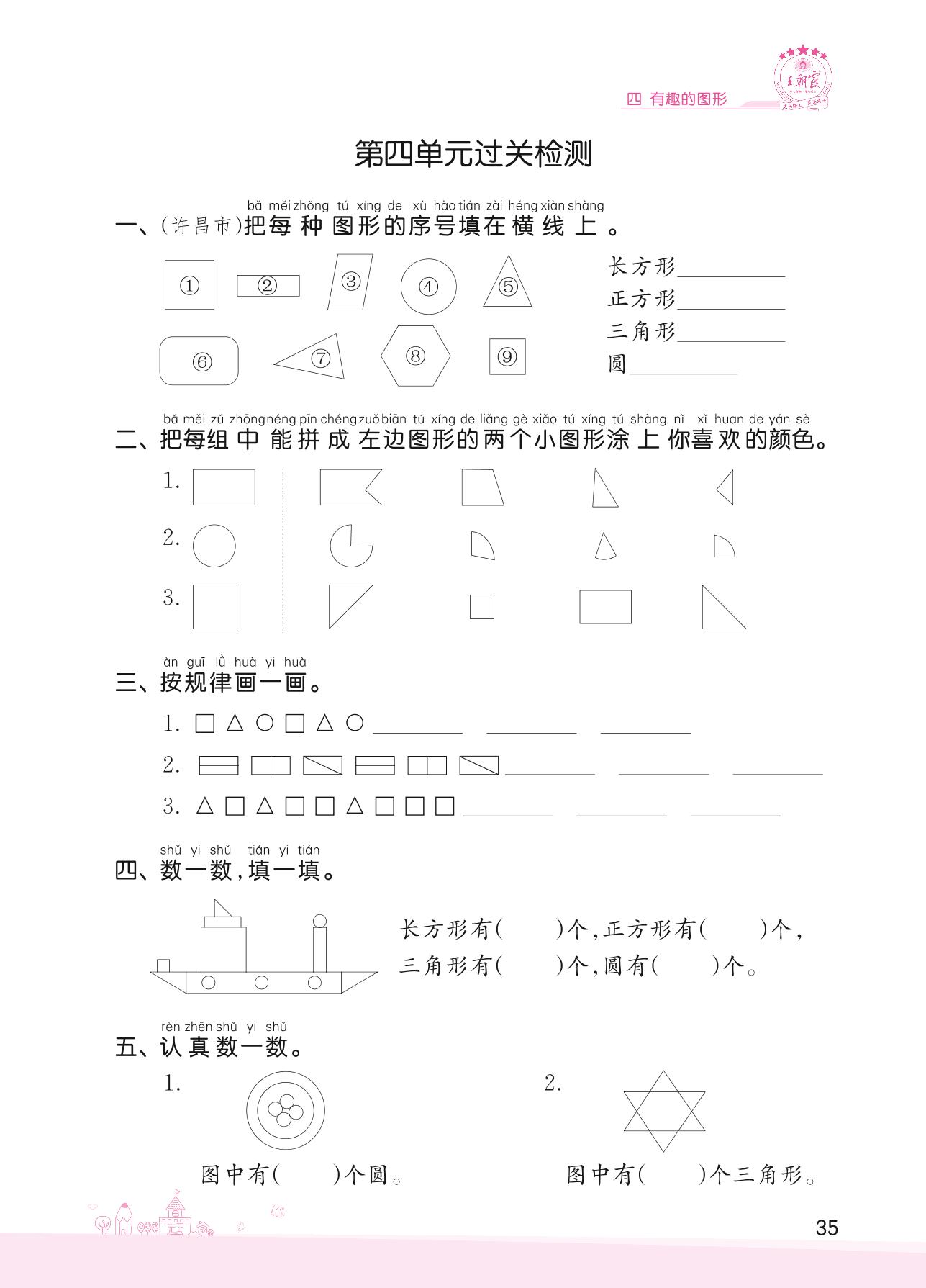 2022下册一年级数学北师版 四 有趣的图形——第四单元过关检测