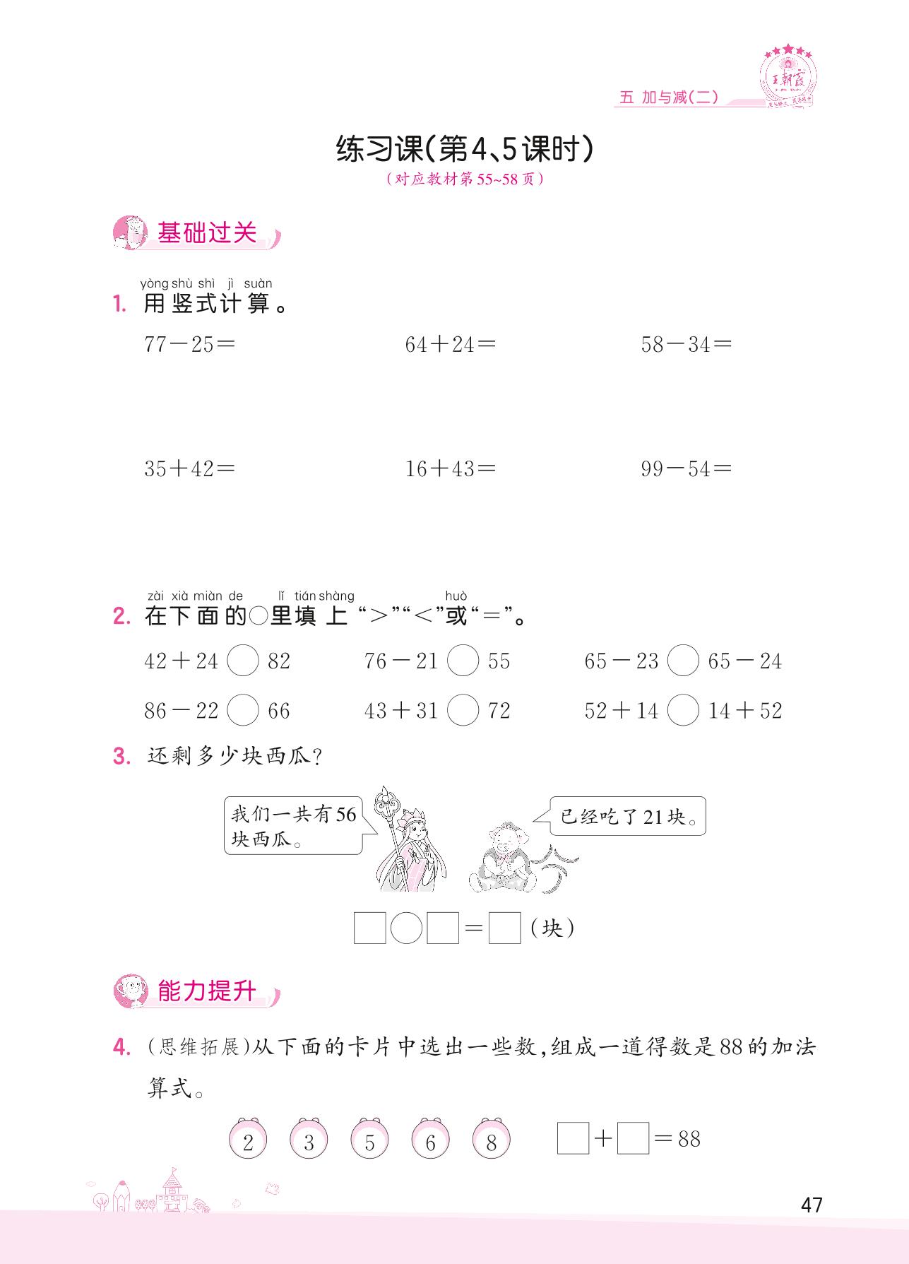 2022下册一年级数学北师版 五 加与减(二)——练习课(第4、5课时)
