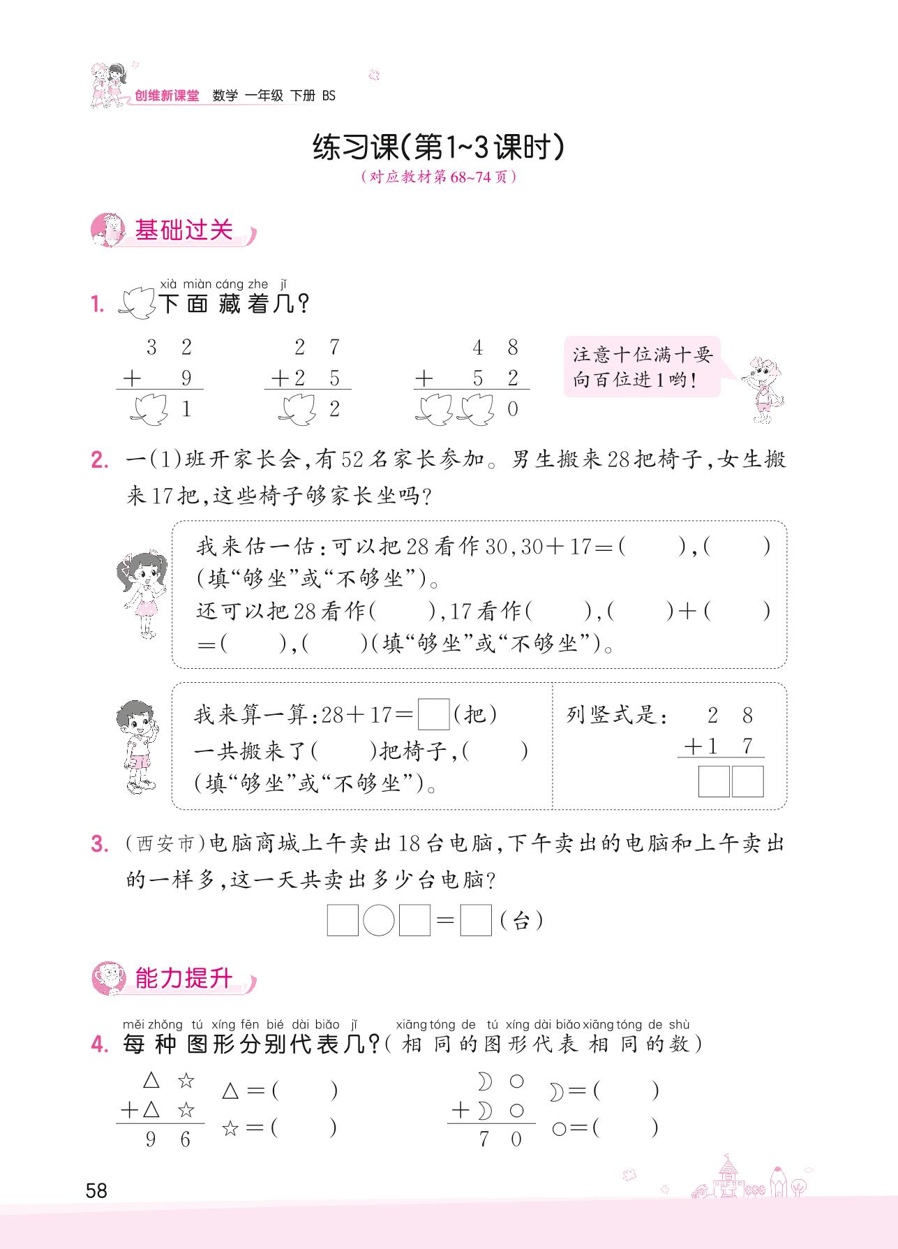 2022下册一年级数学北师版 六 加与减(三)——练习课(第1~3课时)