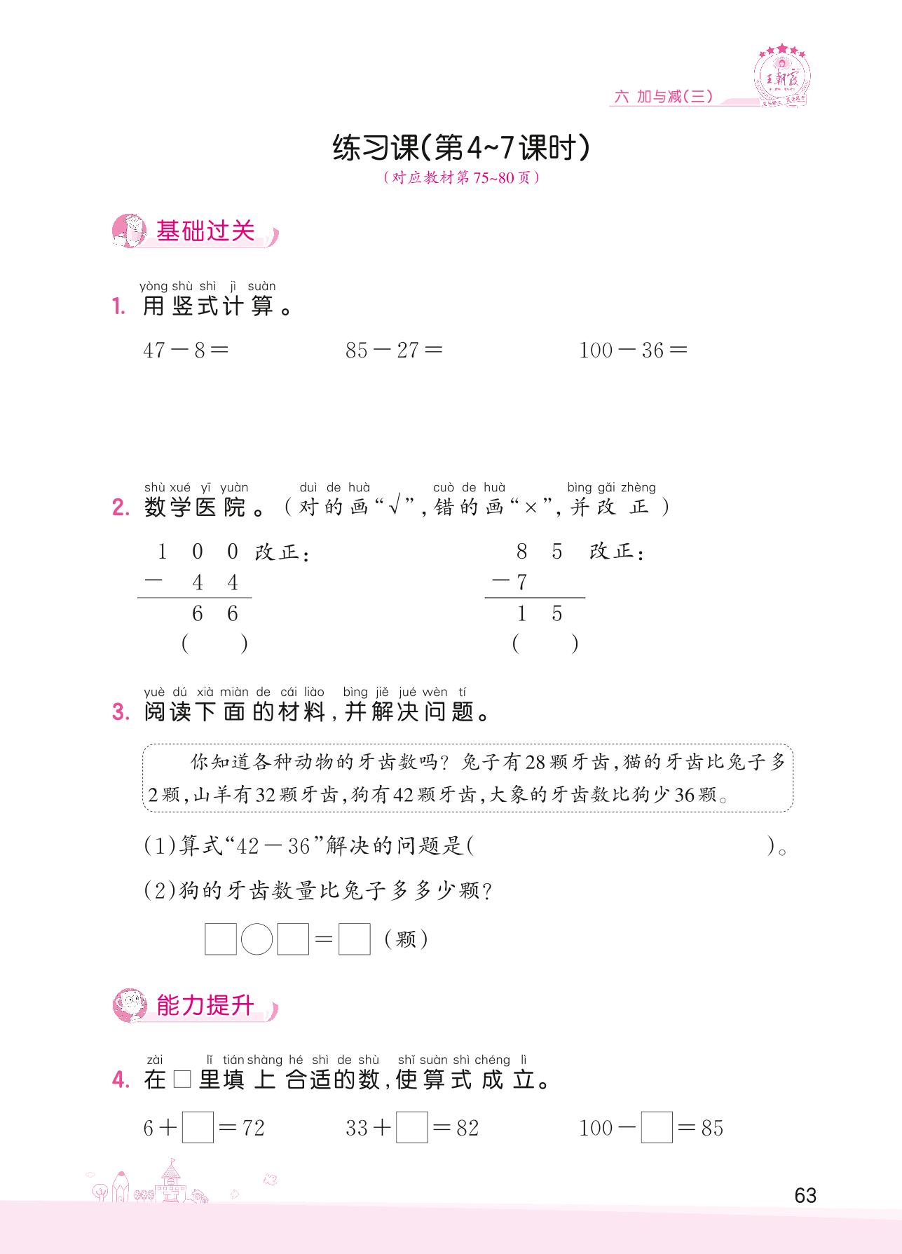 2022下册一年级数学北师版 六 加与减(三)——练习课(第4~7课时)