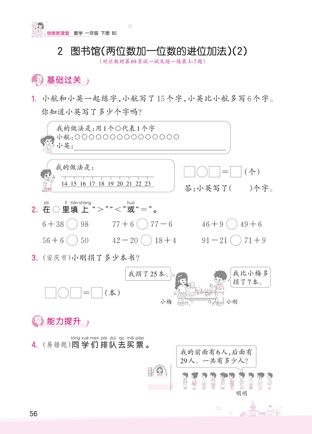 2022下册一年级数学北师版 六 加与减(三)——2 图书馆(2)