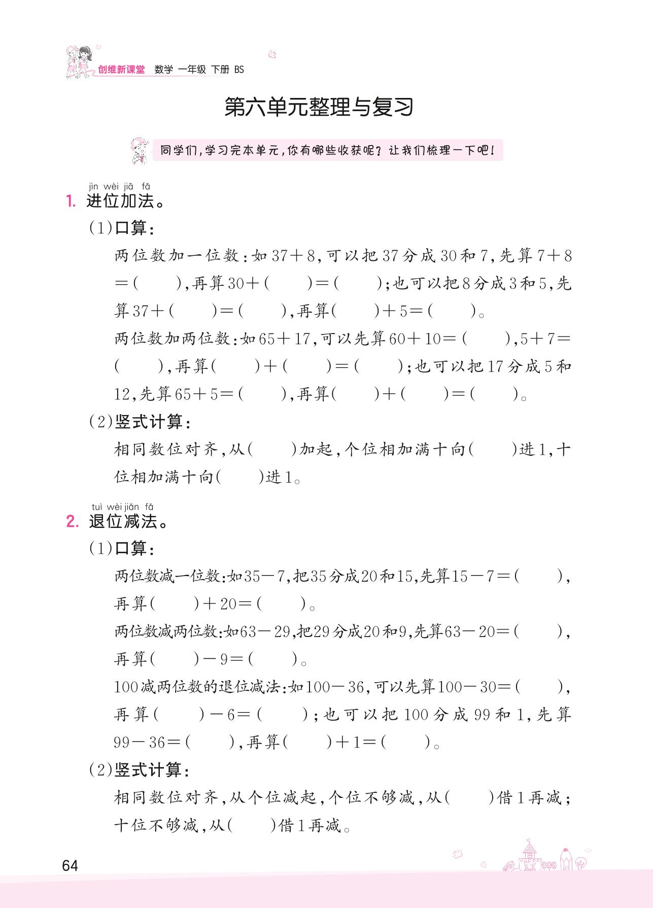 2022下册一年级数学北师版 六 加与减(三)——第六单元整理与复习