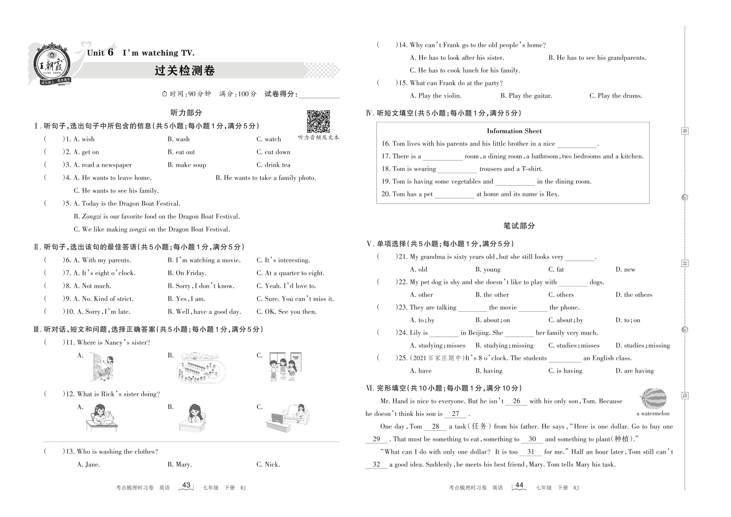 2022下册七年级英语人教版 Unit 6 过关检测卷_R220222105259904