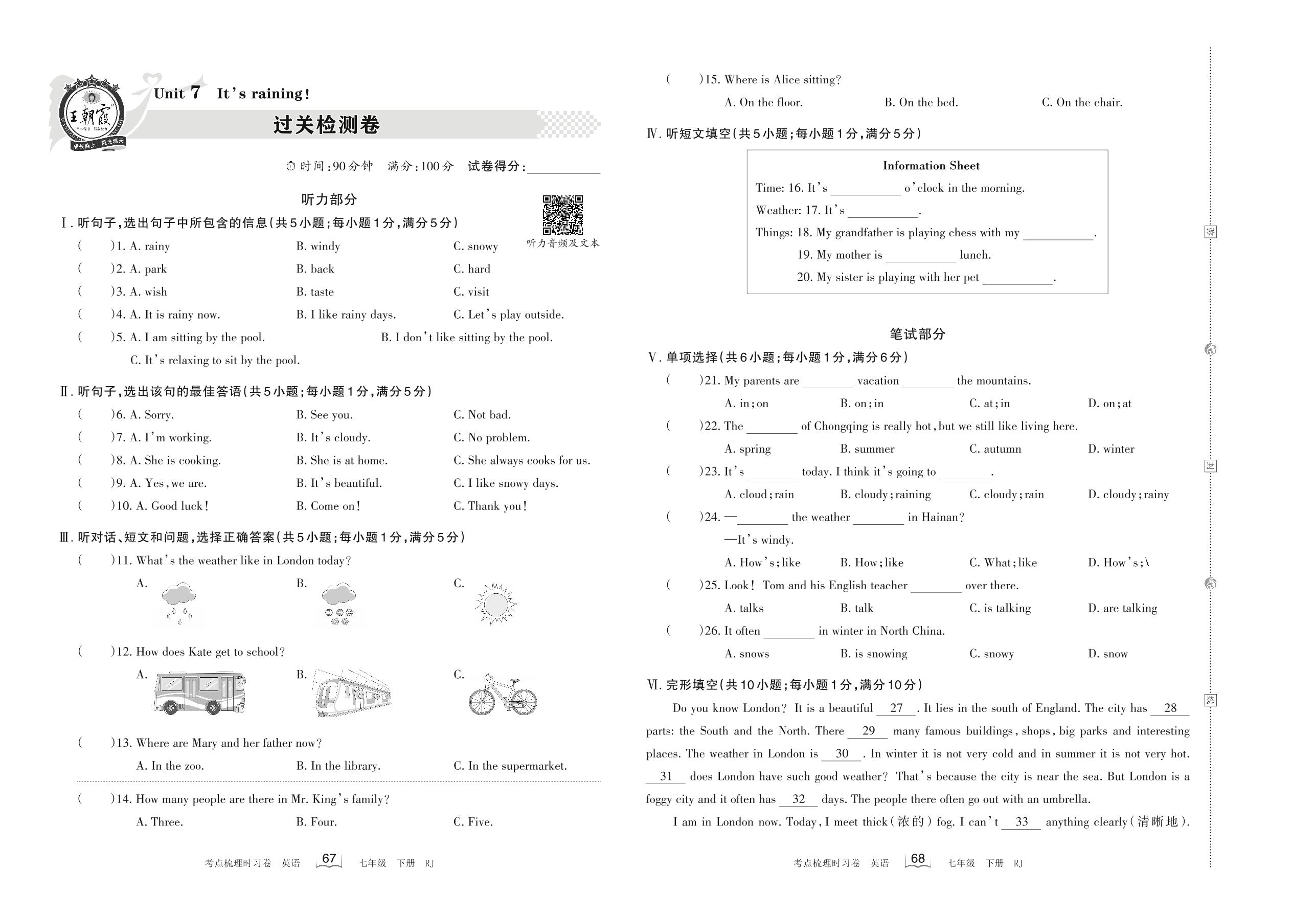 2022下册七年级英语人教版 Unit 7 过关检测卷_R220222105300272