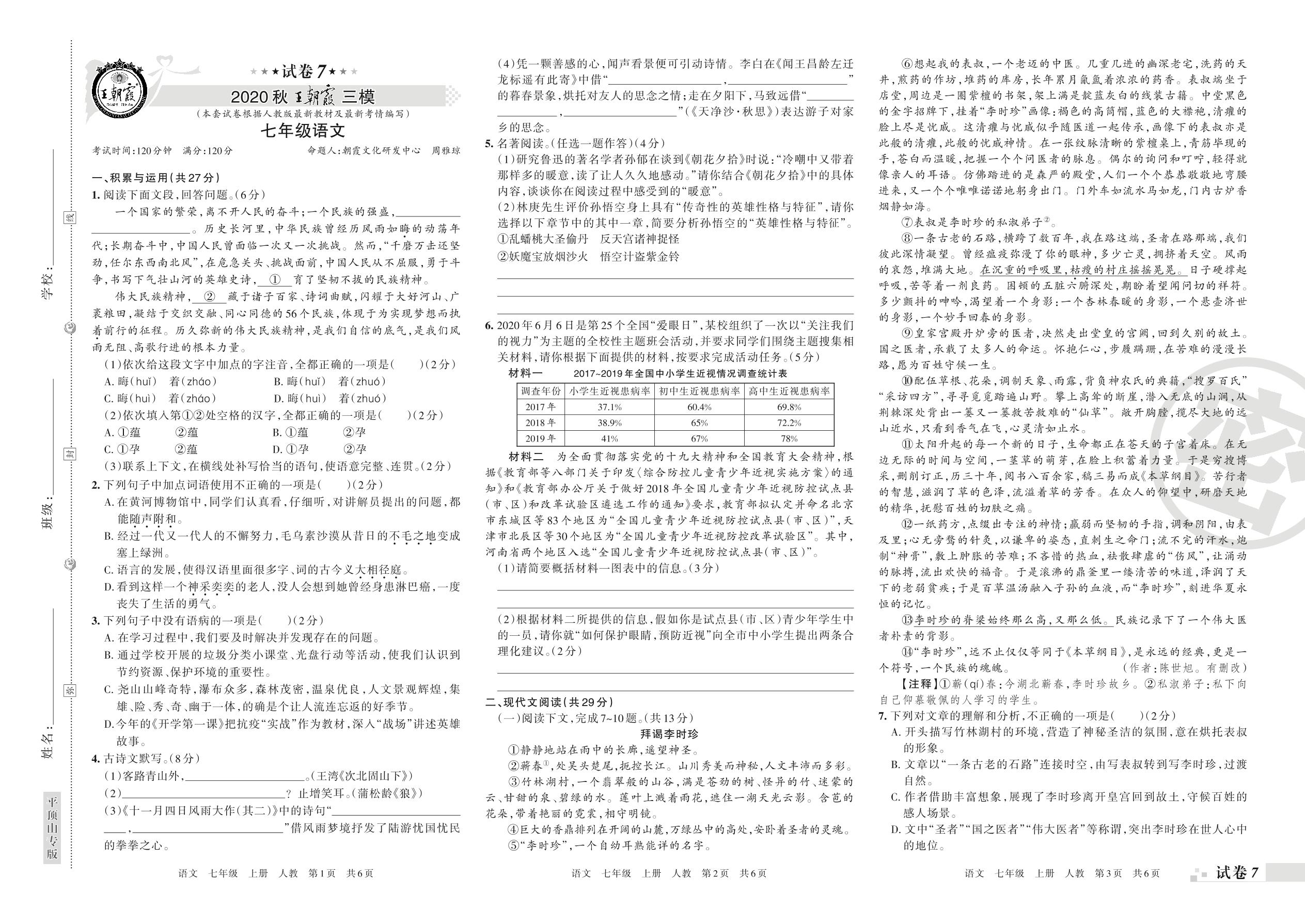 王朝霞期末模拟卷七年级上册语文(人教版)_R2108025235【7】