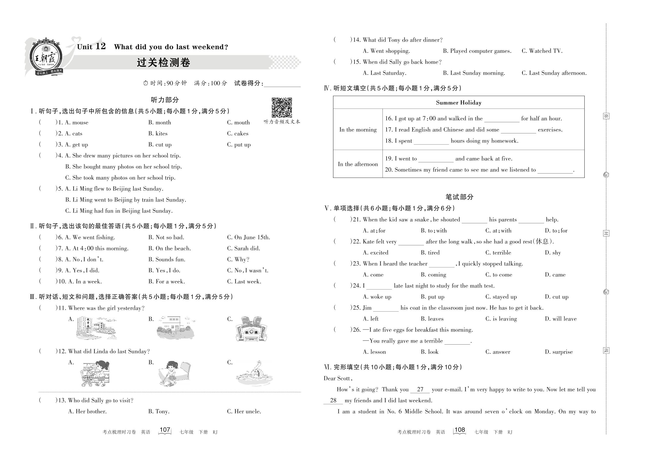 七年级英语人教版下册单元卷