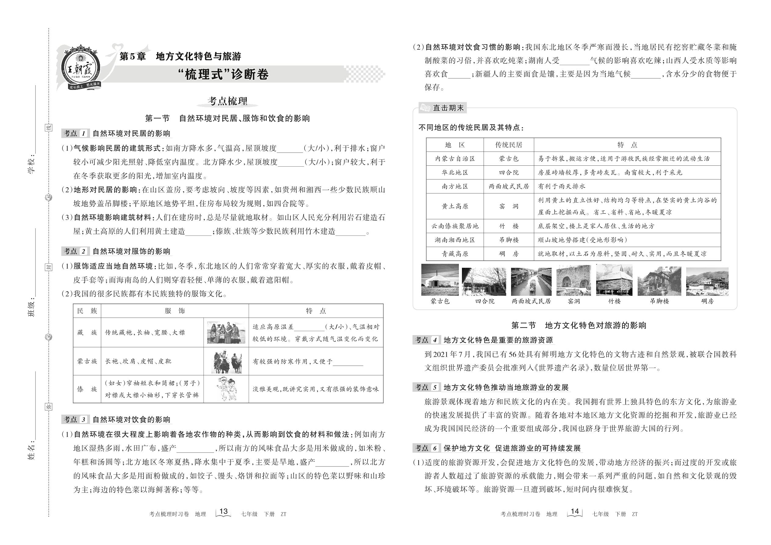 2022下册七年级地理中图版 第5章 “梳理式”诊断卷