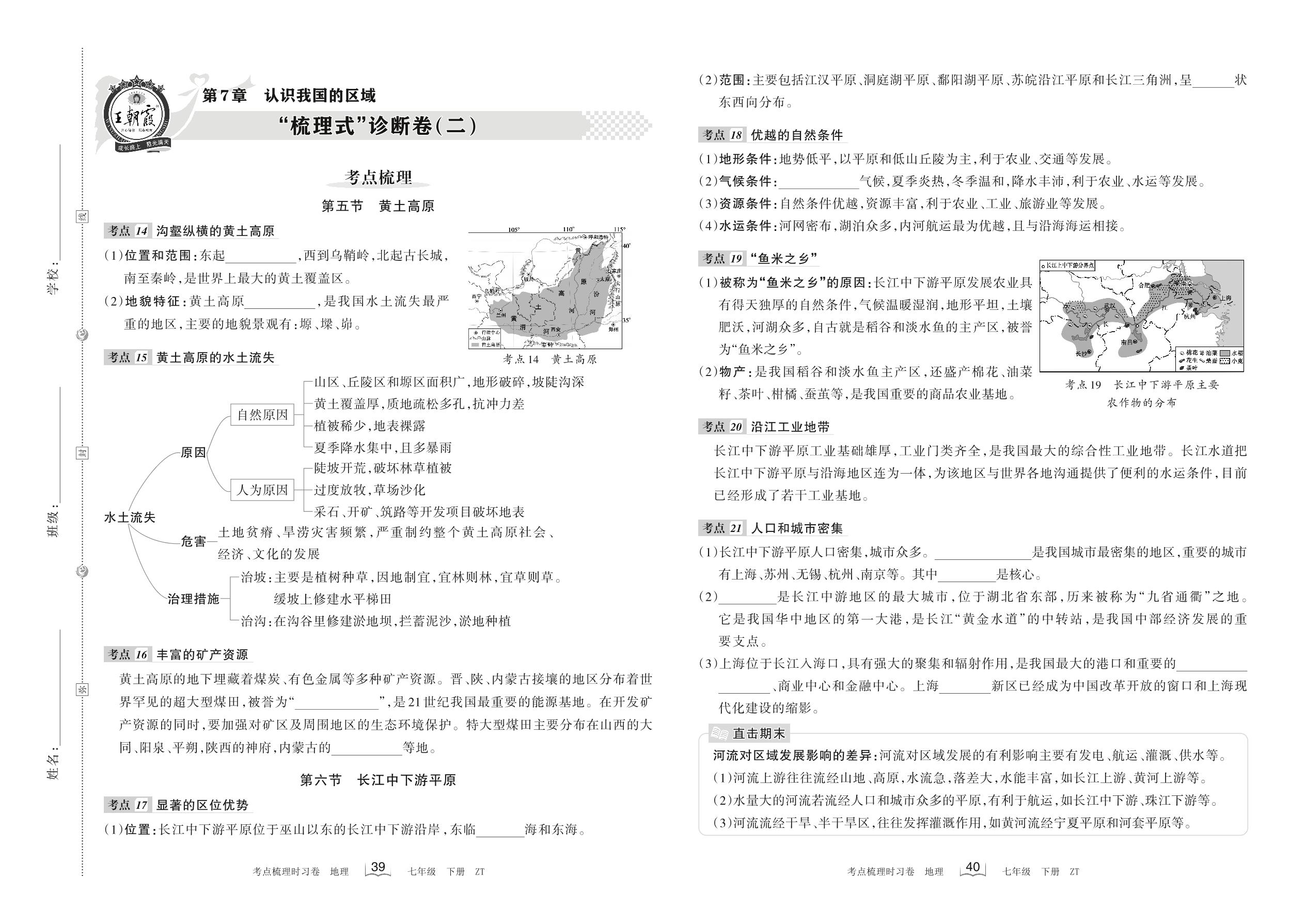 2022下册七年级地理中图版 第7章 “梳理式”诊断卷(二)