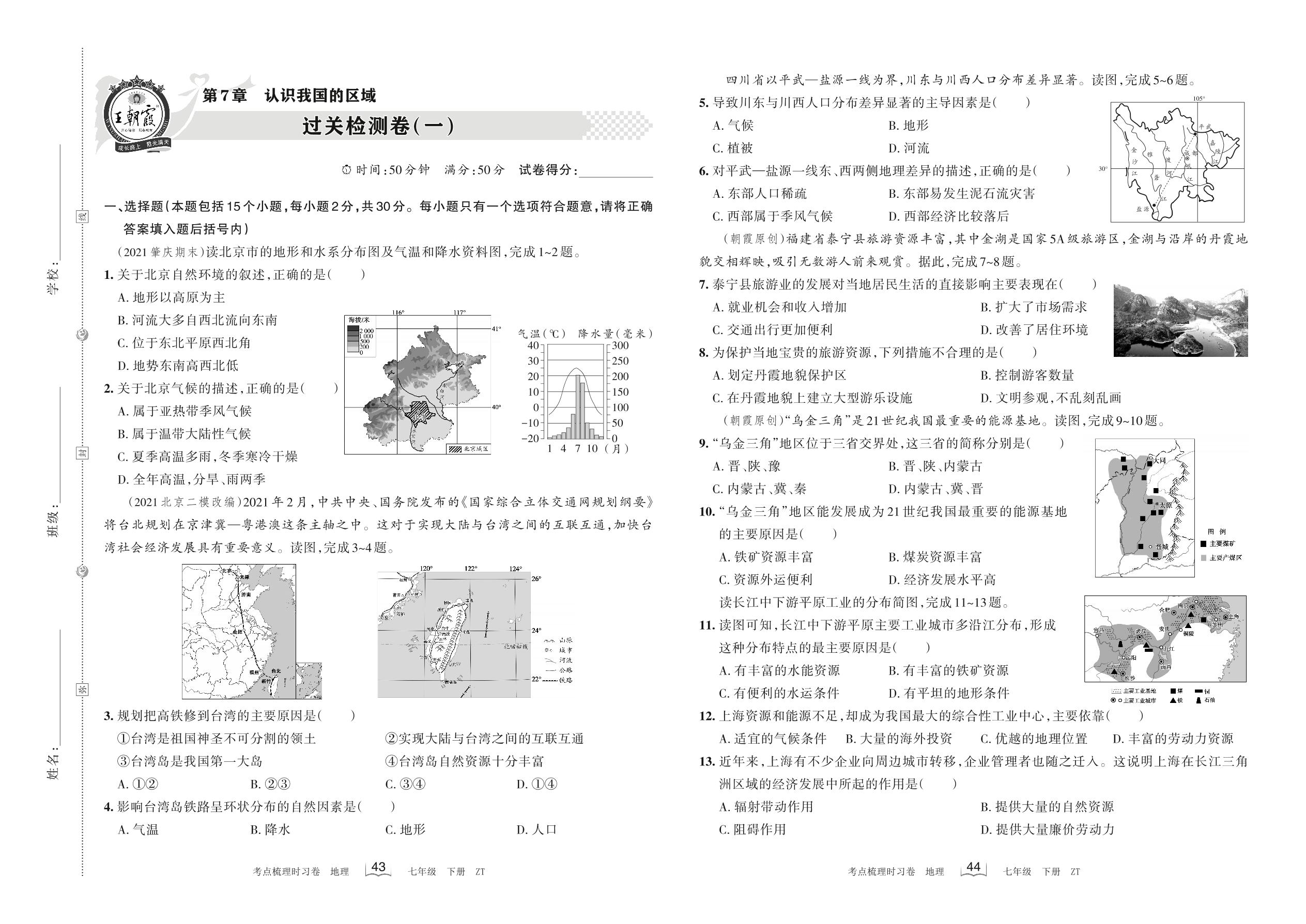 2022下册七年级地理中图版 第7章 过关检测卷(一)