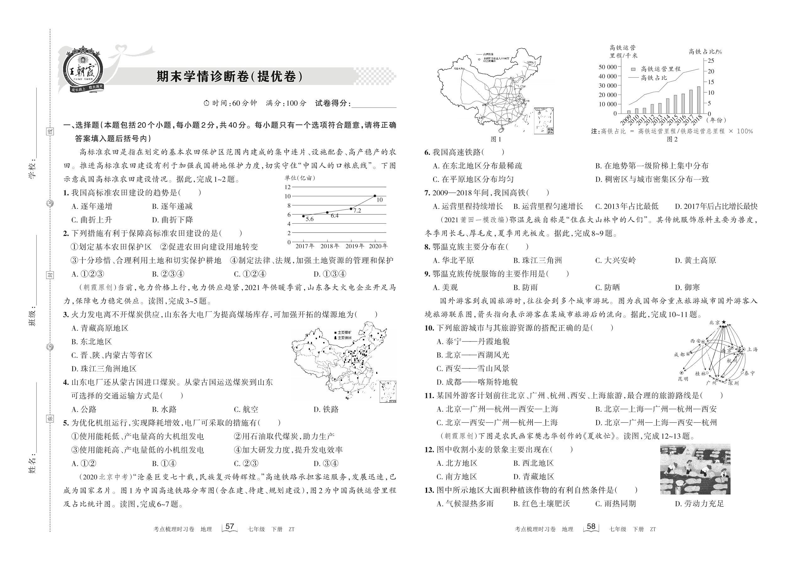 2022下册七年级地理中图版 期末学情诊断卷(提优卷)