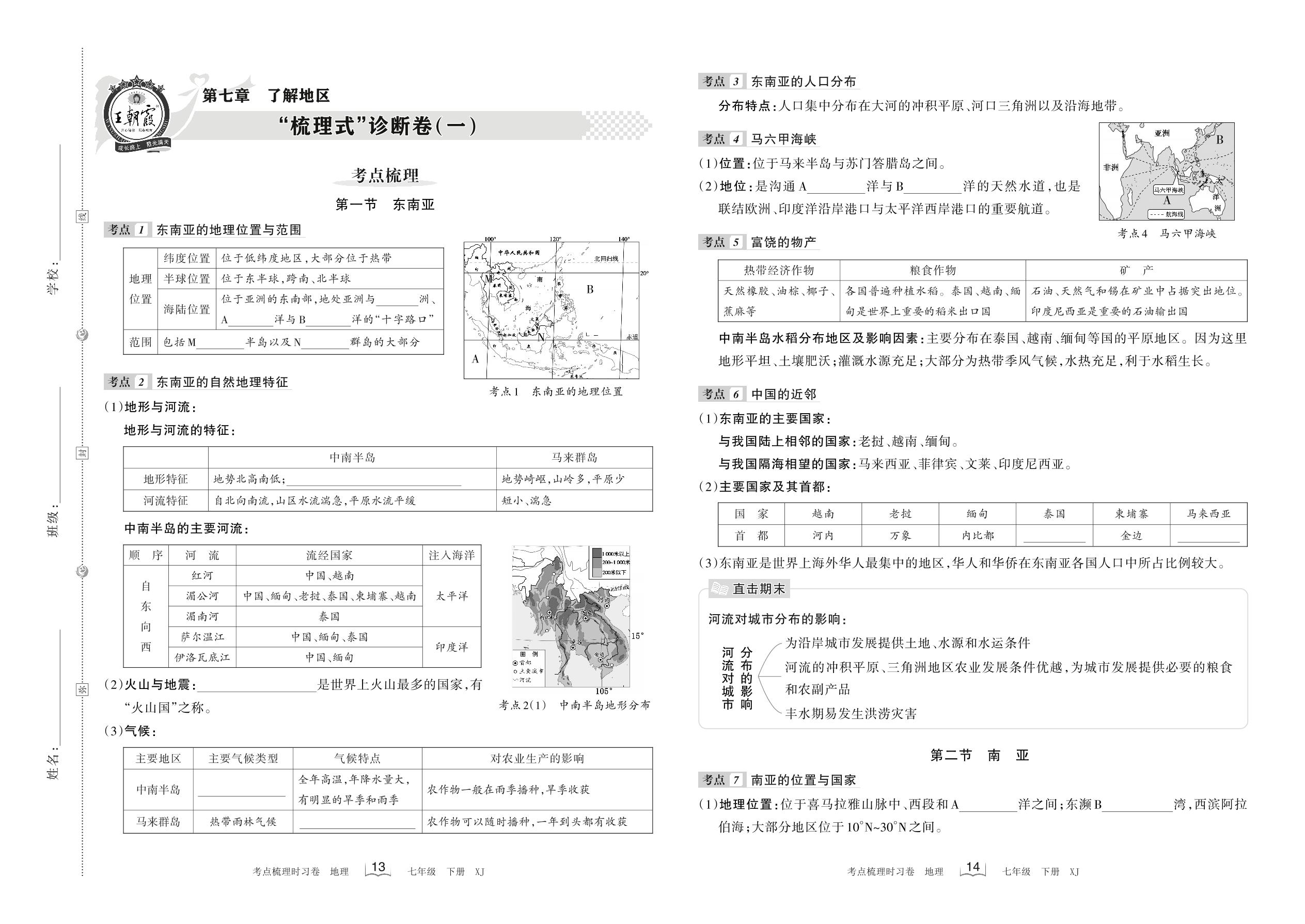 2022下册七年级地理湘教版 第七章 “梳理式”诊断卷(一)