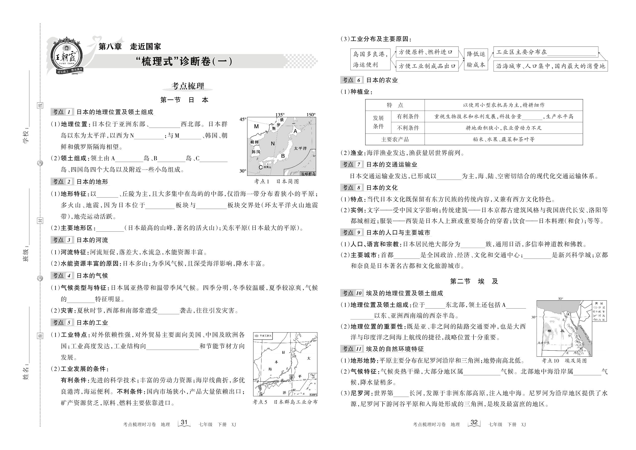 2022下册七年级地理湘教版 第八章 “梳理式”诊断卷(一)