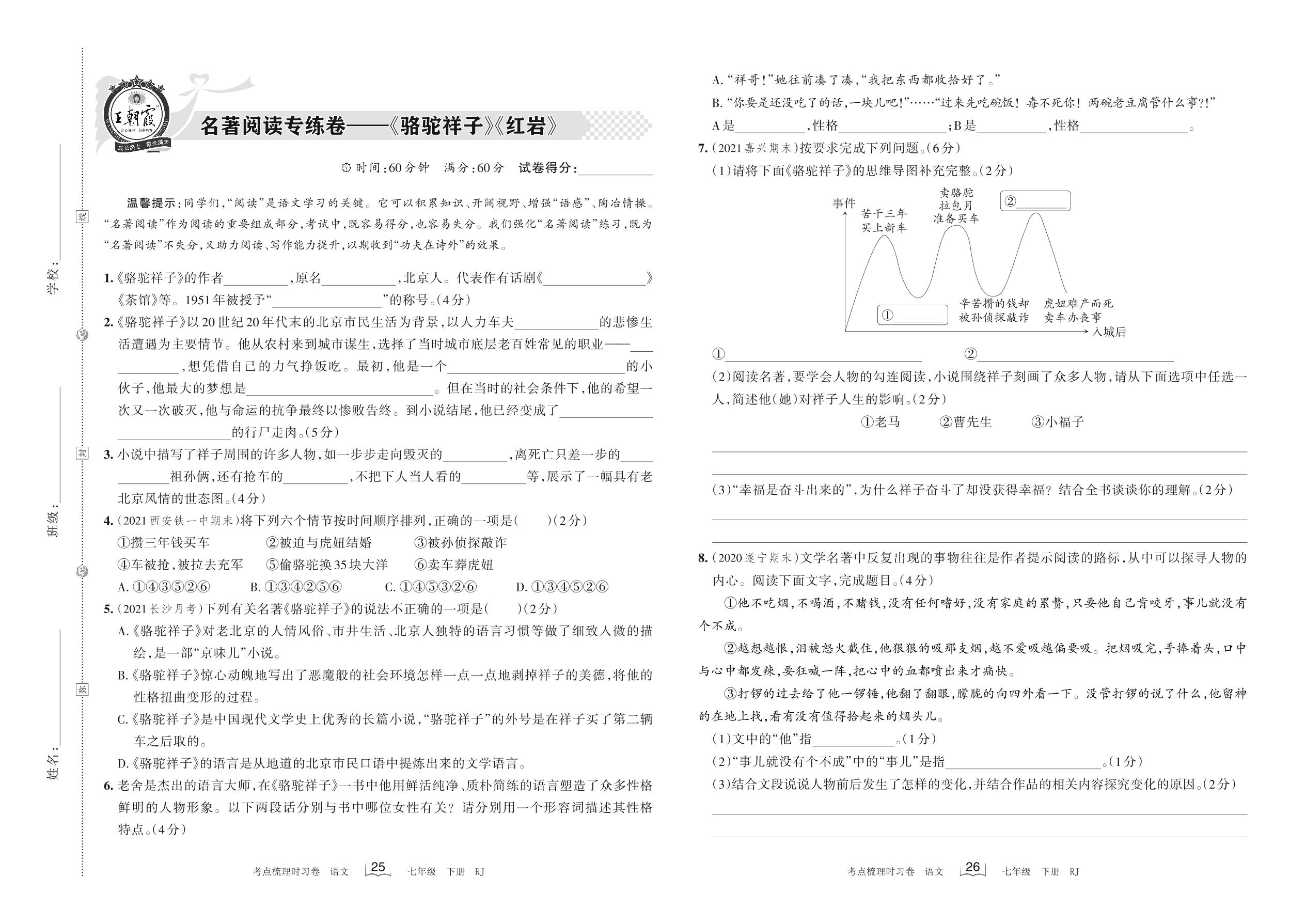 2022下册七年级语文人教版 名著阅读专练卷——《骆驼祥子》《红岩》