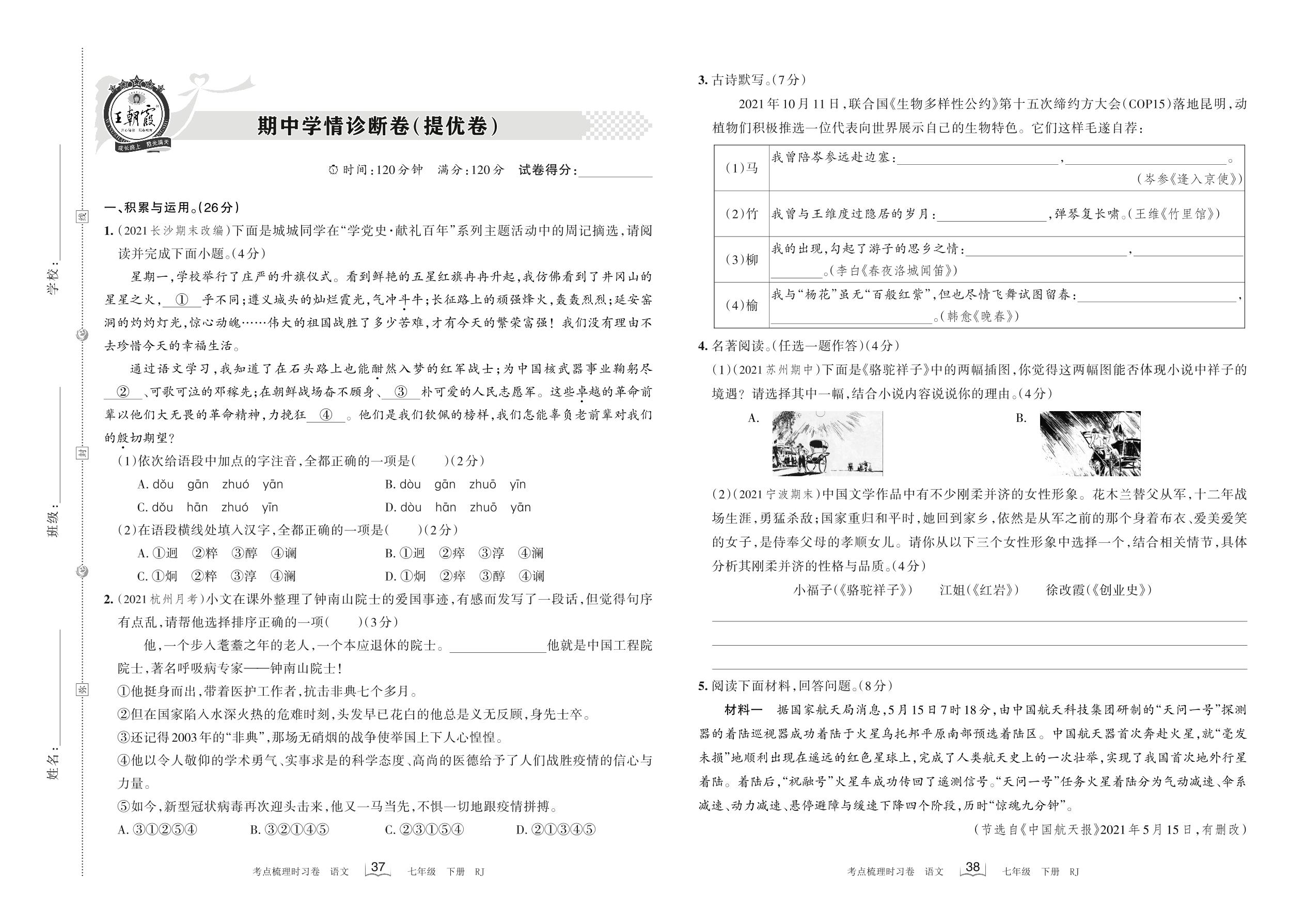 2022下册七年级语文人教版 期中学情诊断卷(提优卷)