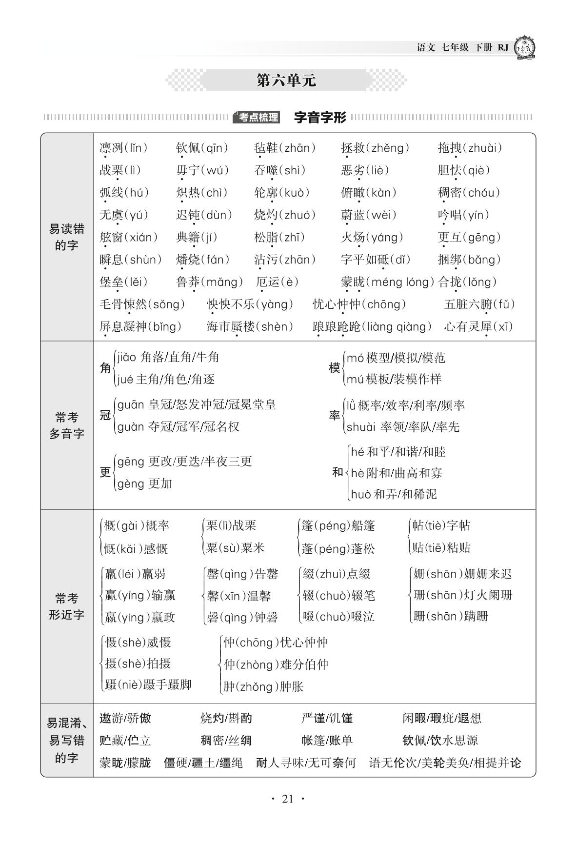 2022下册七年级语文人教版 考点梳理手册——第六单元