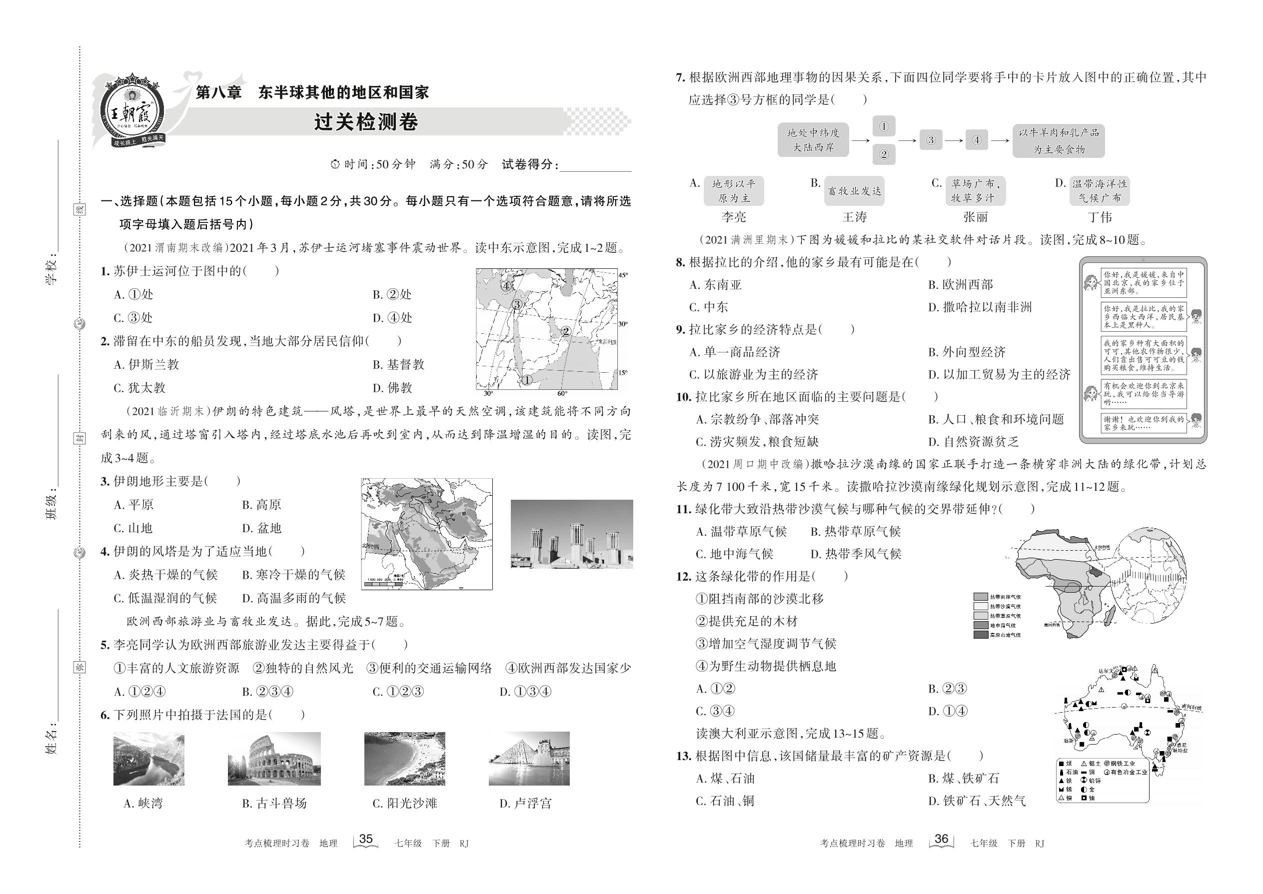 七年级地理人教版下册单元卷