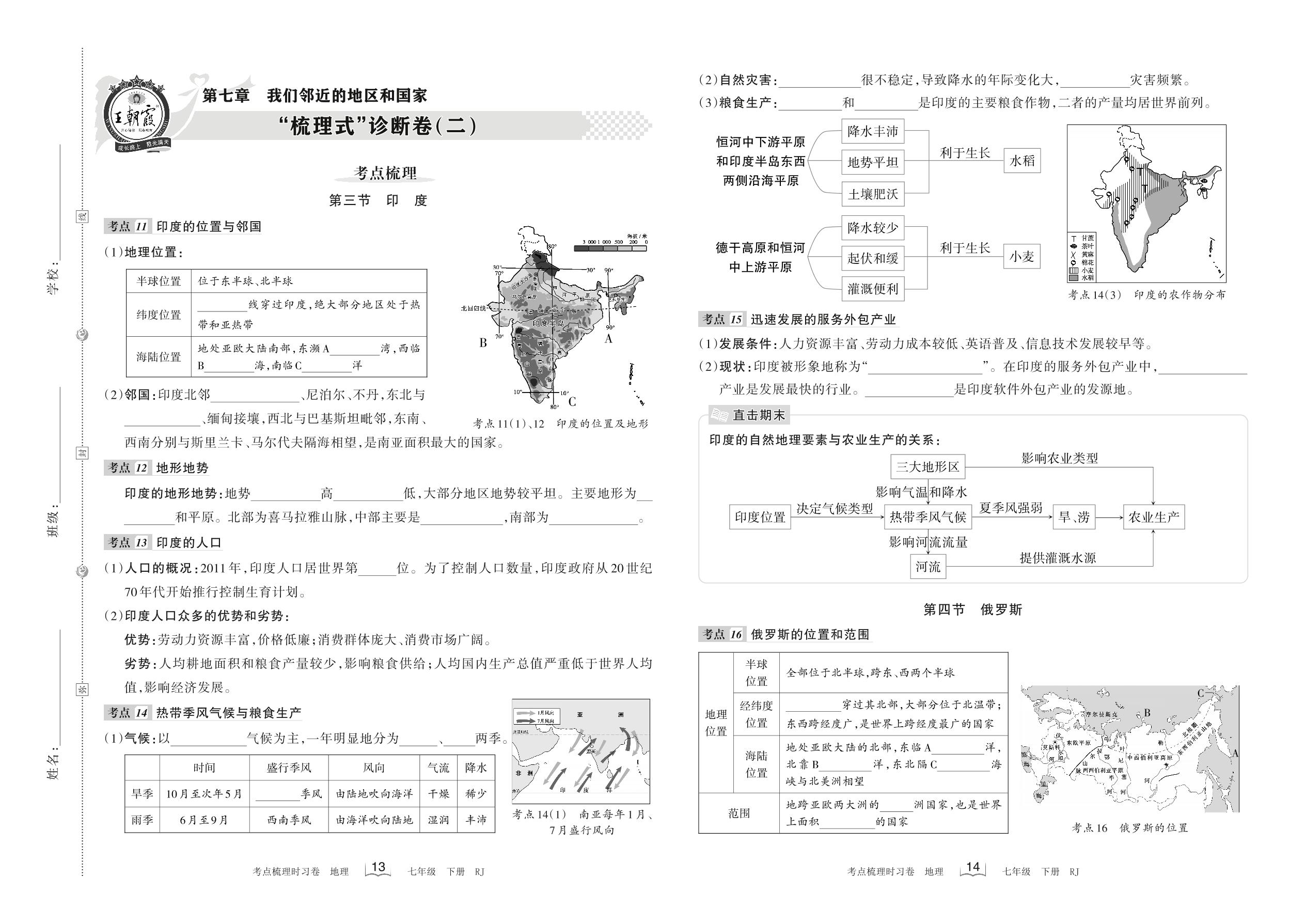 2022下册七年级地理人教版 第七章 “梳理式”诊断卷(二)