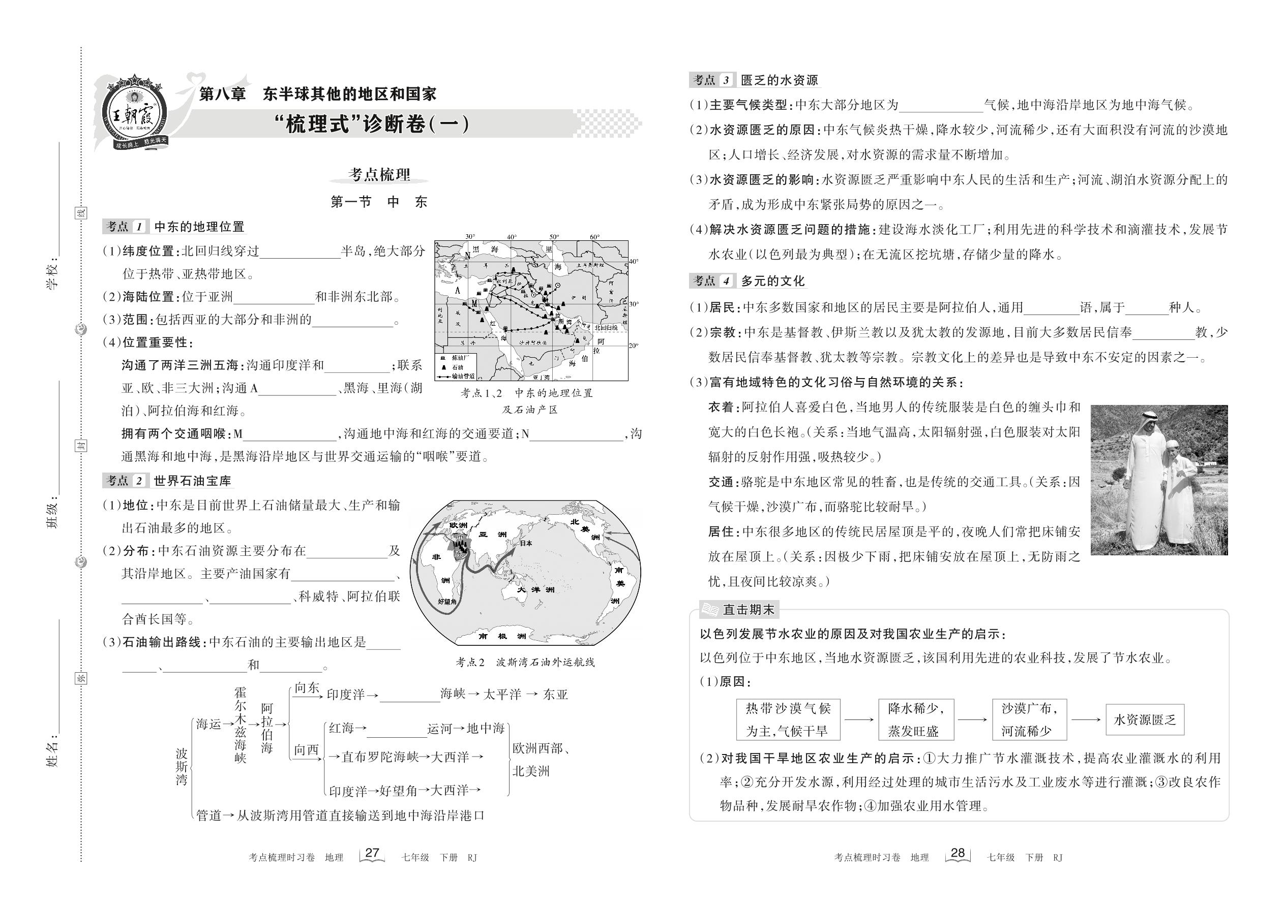 2022下册七年级地理人教版 第八章 “梳理式”诊断卷(一)