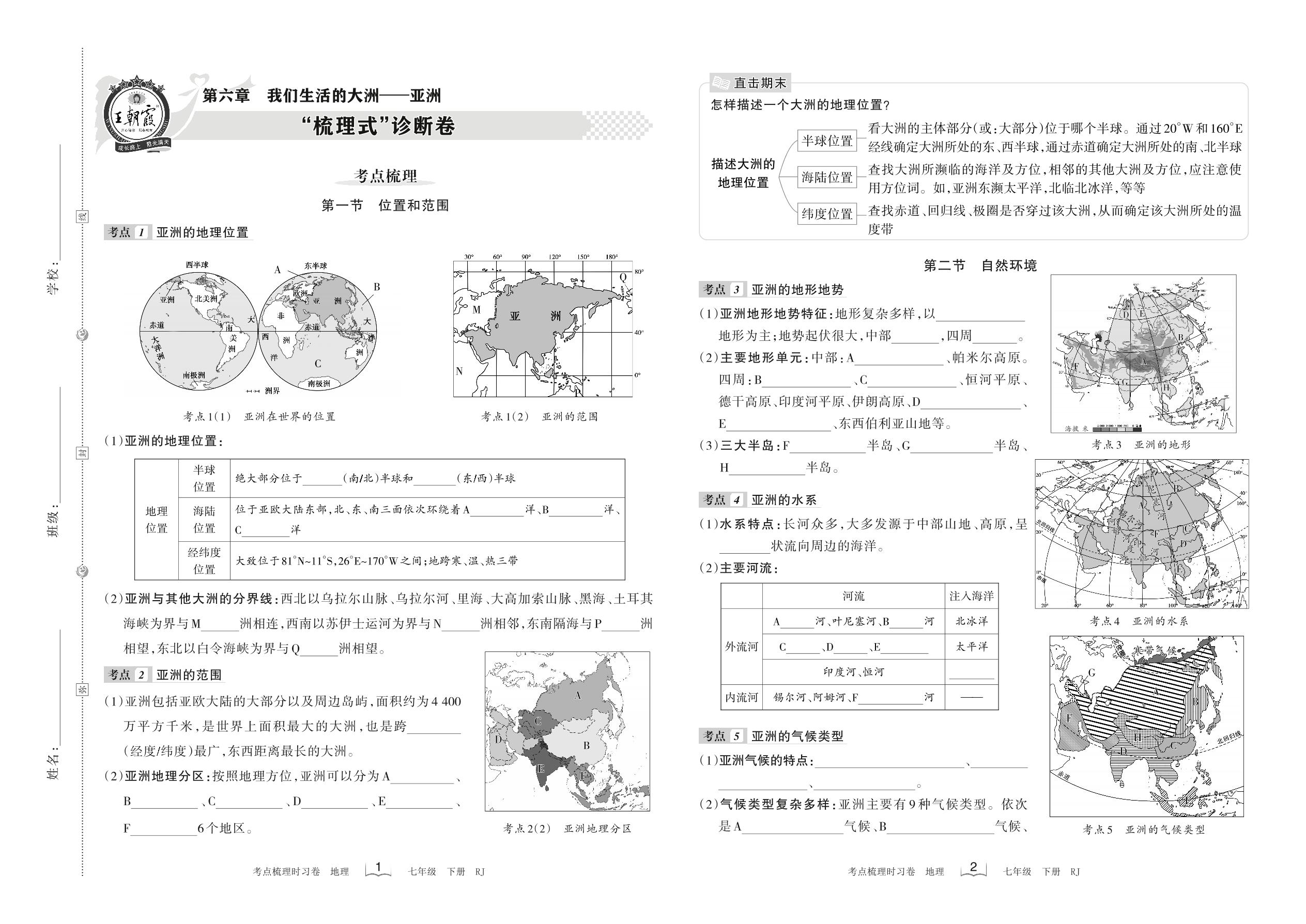 2022下册七年级地理人教版 第六章 “梳理式”诊断卷