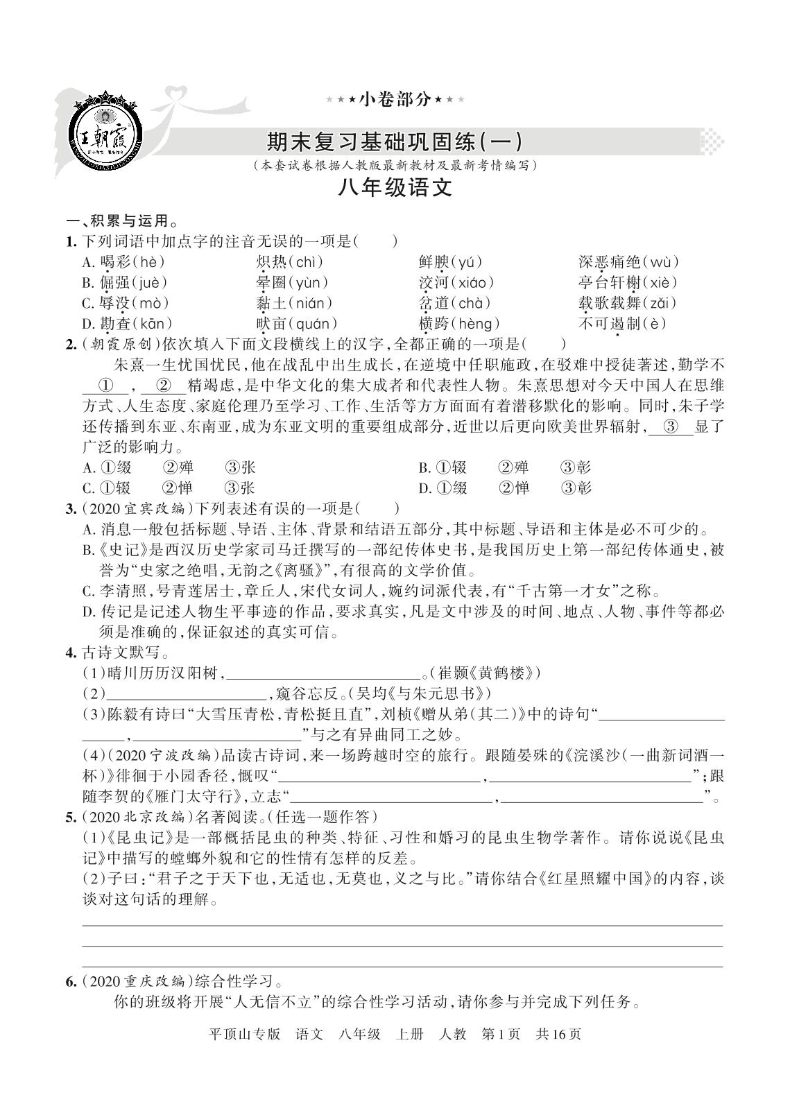 王朝霞期末小卷八年级上册语文(人教版)_R2108025352【0】