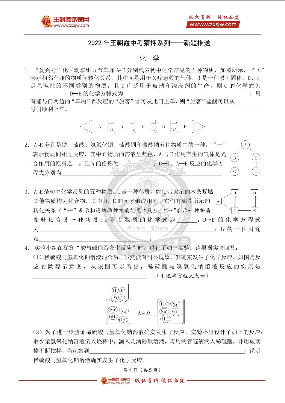 【化学】2022年王朝霞中考猜押系列——新题推送